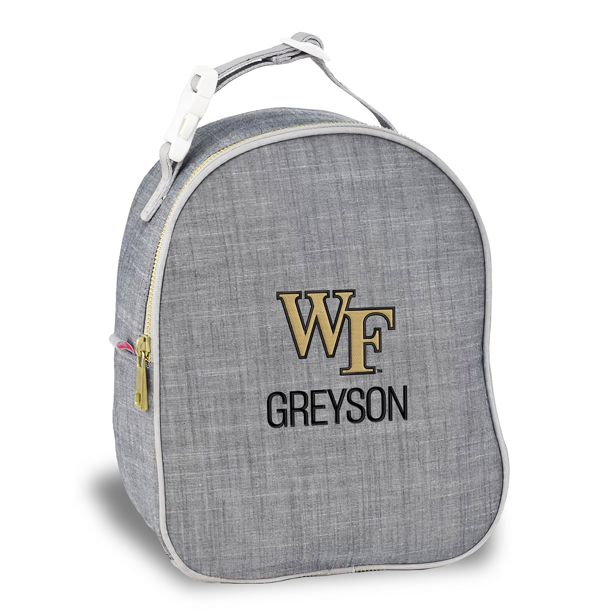 Showcase your passion for the Wake Forest Demon Deacons with our officially licensed insulated lunch bag. Featuring the embroidered Demon Deacons logo, this lunch bag keeps your meals fresh with premium insulation. Measuring 10" x 4" x 8", it offers ample space for your meals and snacks while remaining compact for easy carrying. Made from durable materials, it ensures long-lasting use. Customize it with a name or phrase for a personal touch. Perfect for school, work, or game day events, this lunch bag boldly displays your team spirit and sparks conversations with fellow fans. Get your personalized Demon Deacons insulated lunch bag today and show off your dedication both on and off the field!