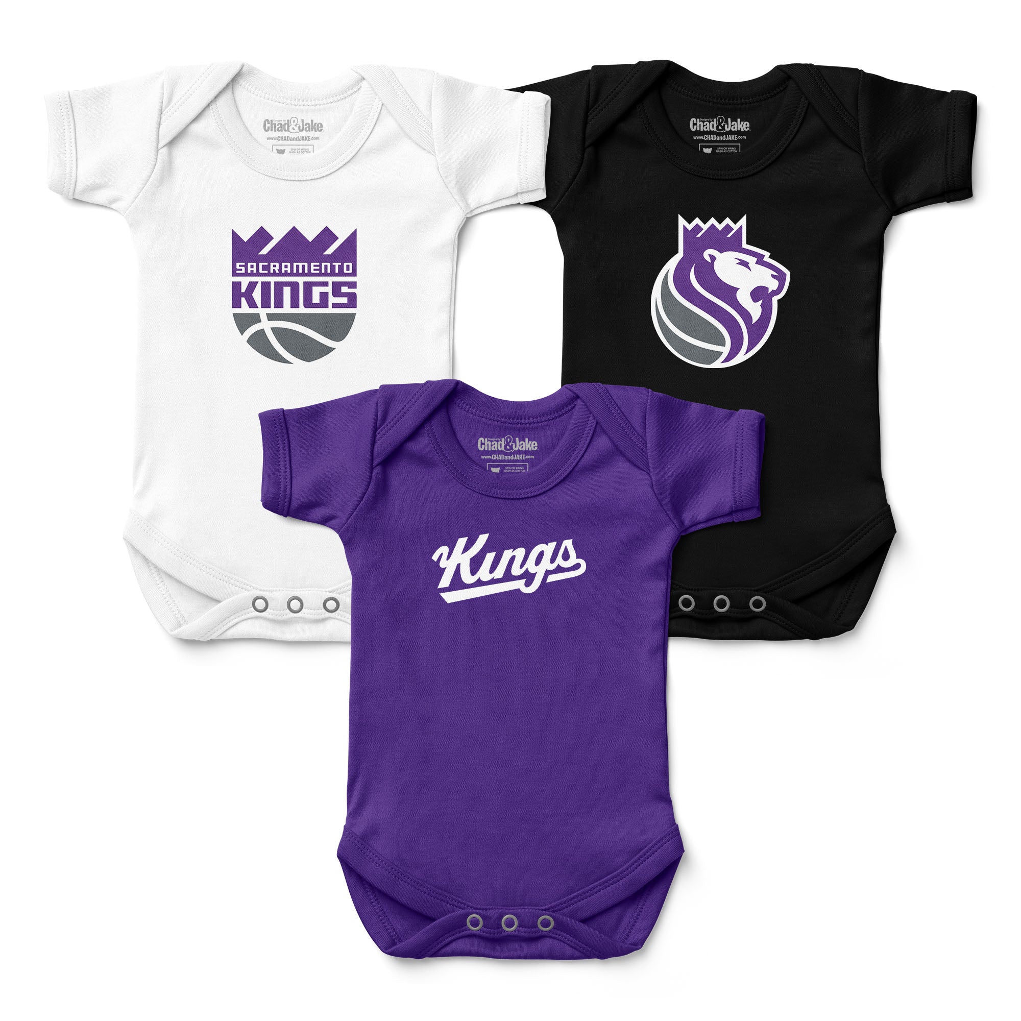 Introduce your little one to the world of hockey with our officially licensed Sacramento Kings 3-Pack Bodysuits. Crafted from soft and breathable cotton, these bodysuits are perfect for keeping your baby comfortable throughout the day. Each pack includes three unique designs that proudly represent the Sacramento Kings, ensuring your baby looks adorable while supporting the team. Available in five sizes: 0-3 Months, 3-6 Months, 6-12 Months, 12-18 Months, and 18-24 Months. Whether it's game day or everyday wear, your little one will be the cutest Kings fan in town. Get your 3-pack today and show your Sacramento Kings spirit!