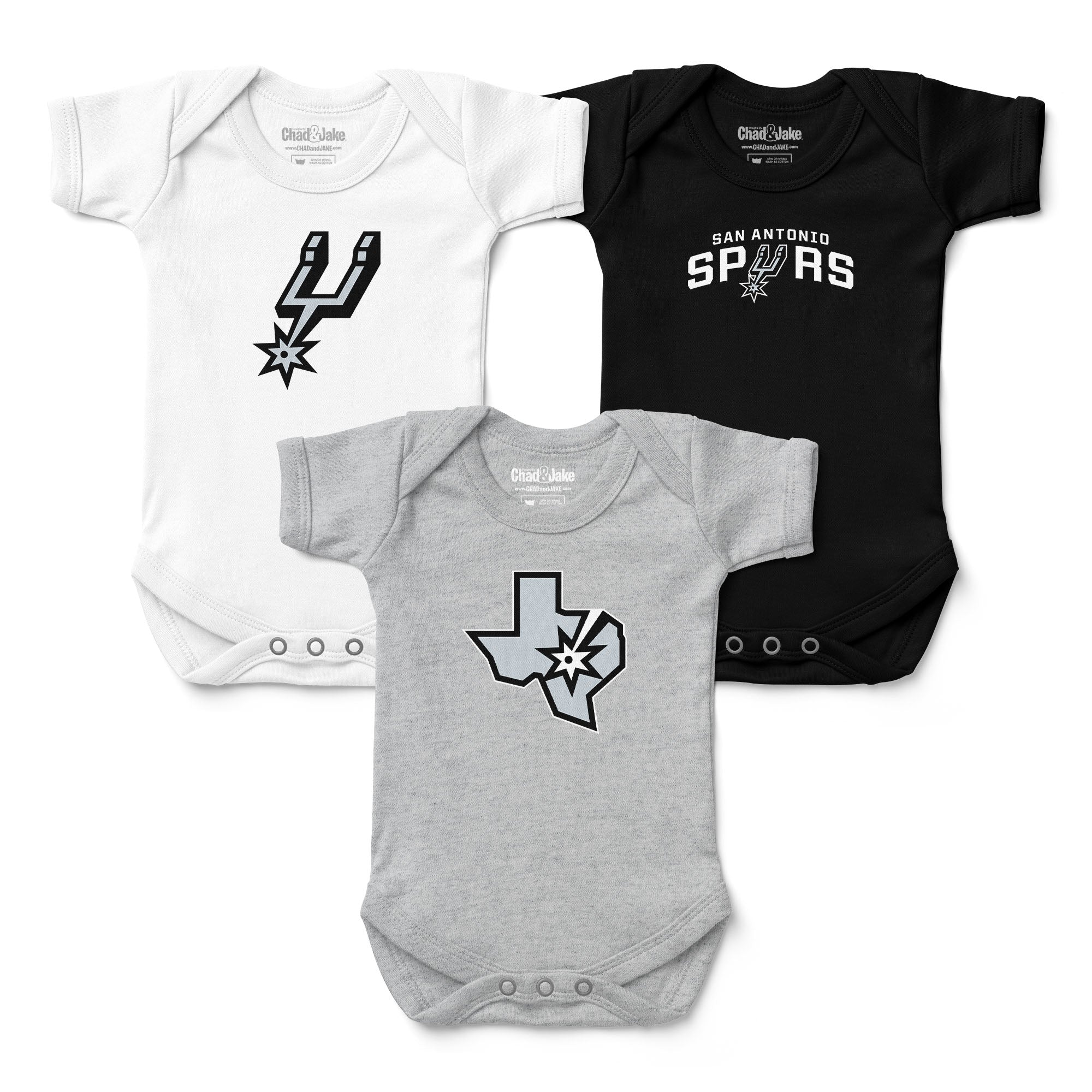 Introduce your little one to the world of hockey with our officially licensed San Antonio Spurs 3-Pack Bodysuits. Crafted from soft and breathable cotton, these bodysuits are perfect for keeping your baby comfortable throughout the day. Each pack includes three unique designs that proudly represent the San Antonio Spurs, ensuring your baby looks adorable while supporting the team. Available in five sizes: 0-3 Months, 3-6 Months, 6-12 Months, 12-18 Months, and 18-24 Months. Whether it's game day or everyday wear, your little one will be the cutest Spurs fan in town. Get your 3-pack today and show your San Antonio Spurs spirit!
