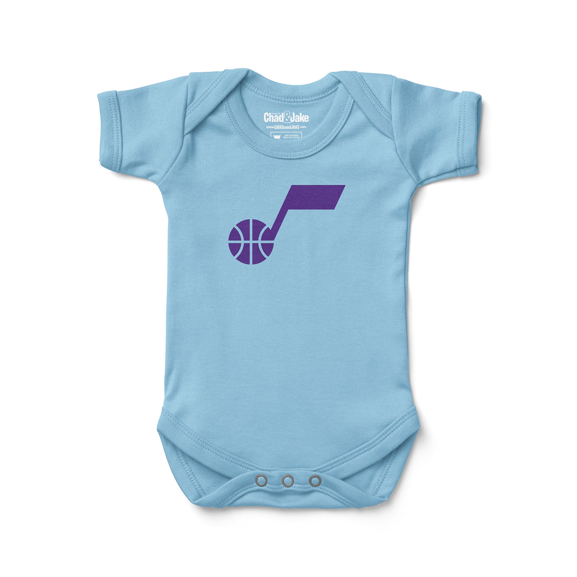 Wrap your little one in the ultimate fan gear with our officially licensed Utah Jazz Baby Bodysuit. Made from 100% interlock cotton, this bodysuit is incredibly soft to the touch, ensuring your baby's comfort all day long. Featuring the official NBA logo, it's the perfect way to start your baby's journey as a loyal Jazz fan from day one. This bodysuit is available in five sizes: 0-3 Months, 3-6 Months, 6-12 Months, 12-18 Months, and 18-24 Months. Get your little one geared up in style and show your Utah Jazz pride with this adorable baby bodysuit. Order yours today!