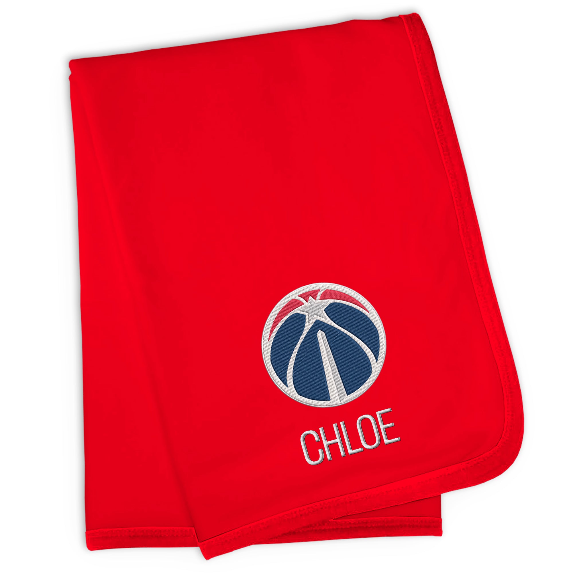 Our Personalized Washington Wizards Blanket is sized just right for a baby basketball fan. Constructed from super soft 100% cotton jersey knit and trimmed in Wizards team colors, this blanket is perfect for walks in the stroller or swaddling at bedtime. Each blanket is embroidered with the official Wizards logo and your little one’s name or nickname.