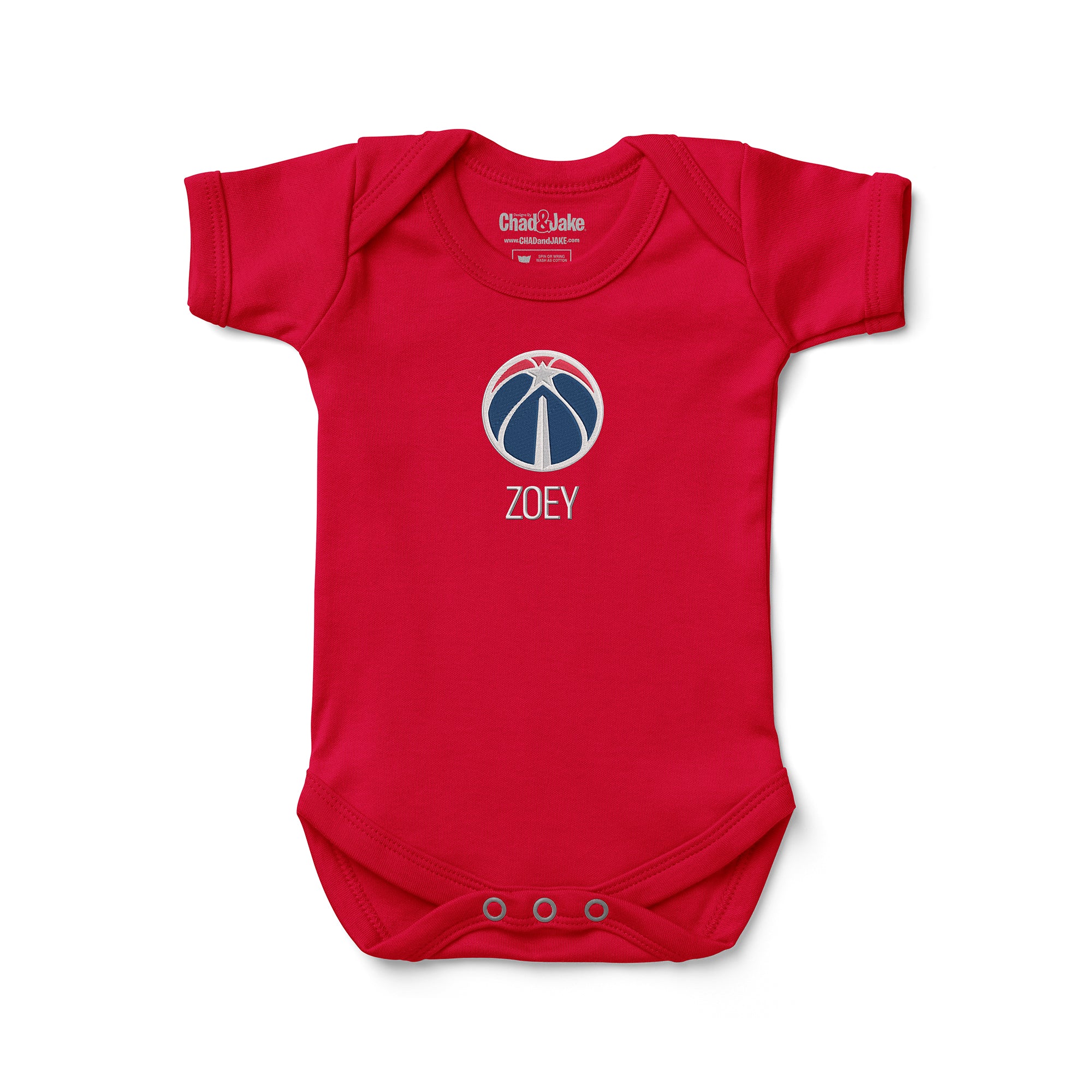 But the real standout feature of this bodysuit is the embroidered Washington Wizards logo on the front, personalized with your little one's name, initials, or nickname under the logo. Let everyone know where your loyalty lies with this personalized bodysuit. As the official slogan of the Washington Wizards states, "Wizards Unite" and this bodysuit is the perfect way to show your support for the team.