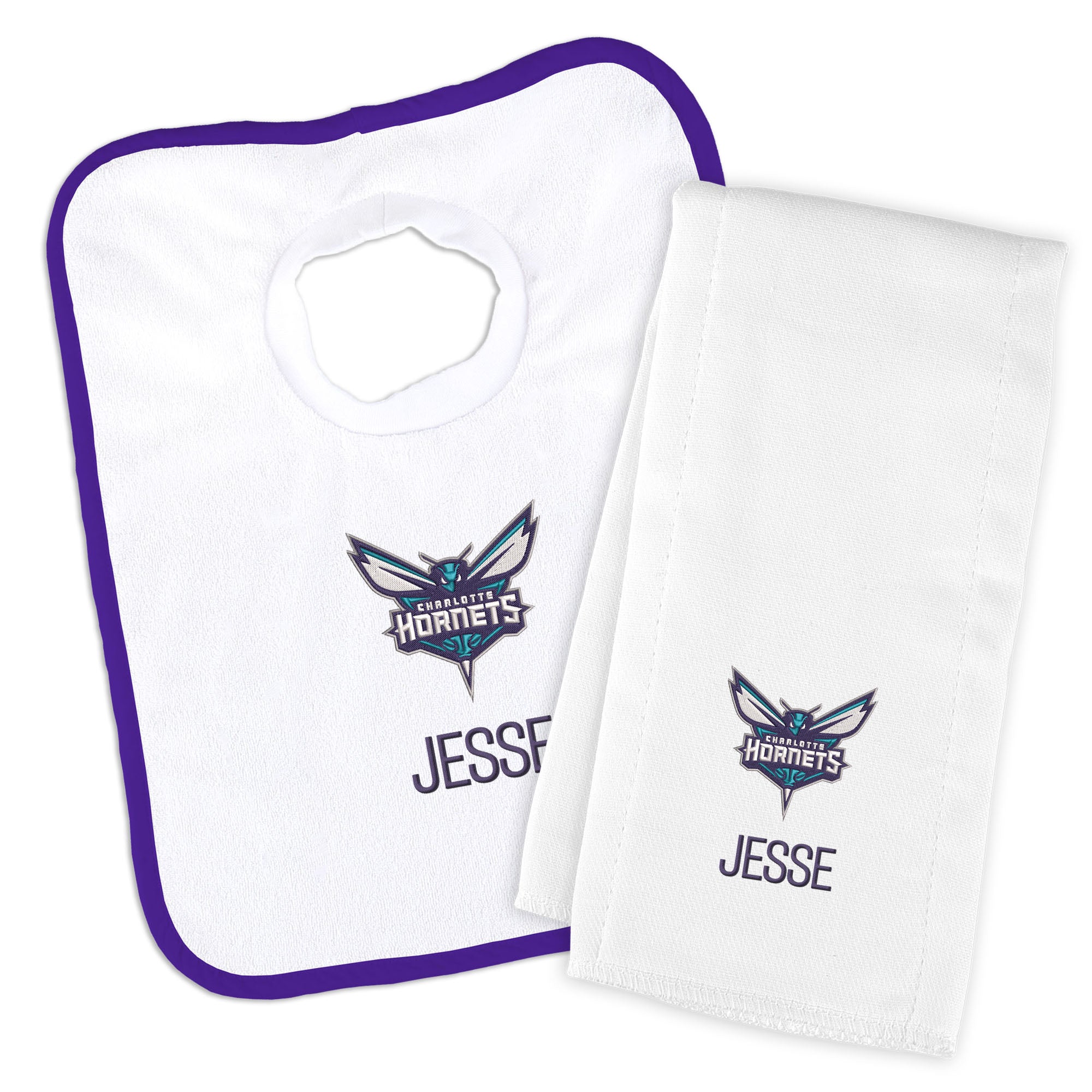 Our Personalized Charlotte Hornets Bib and Burp Cloth Set is a thoughtful and useful gift for every baby Hornets fan. The Hornets burp cloth is generously sized and made of soft, absorbent 100% cotton, and the Hornets bib has a soft, stretchable cotton neck hole for baby’s comfort. Parents, the bib slips easily over your baby's head and features a soft, gently gathered stretch cotton neck hole for maximum comfort; also, the burp cloth is a must-have asset.