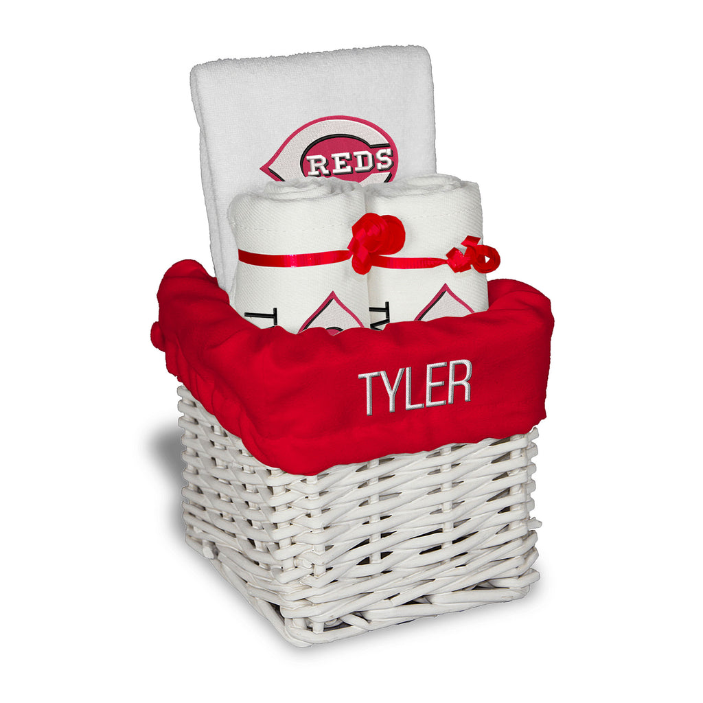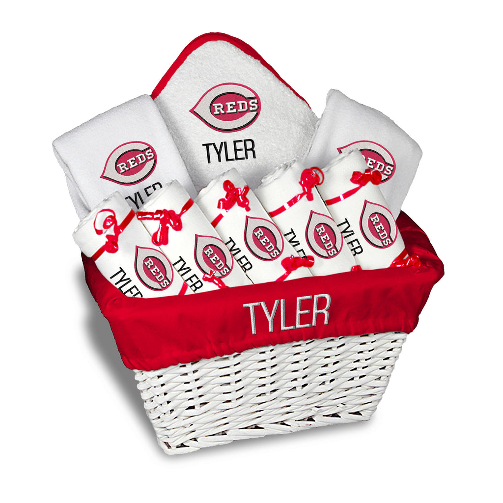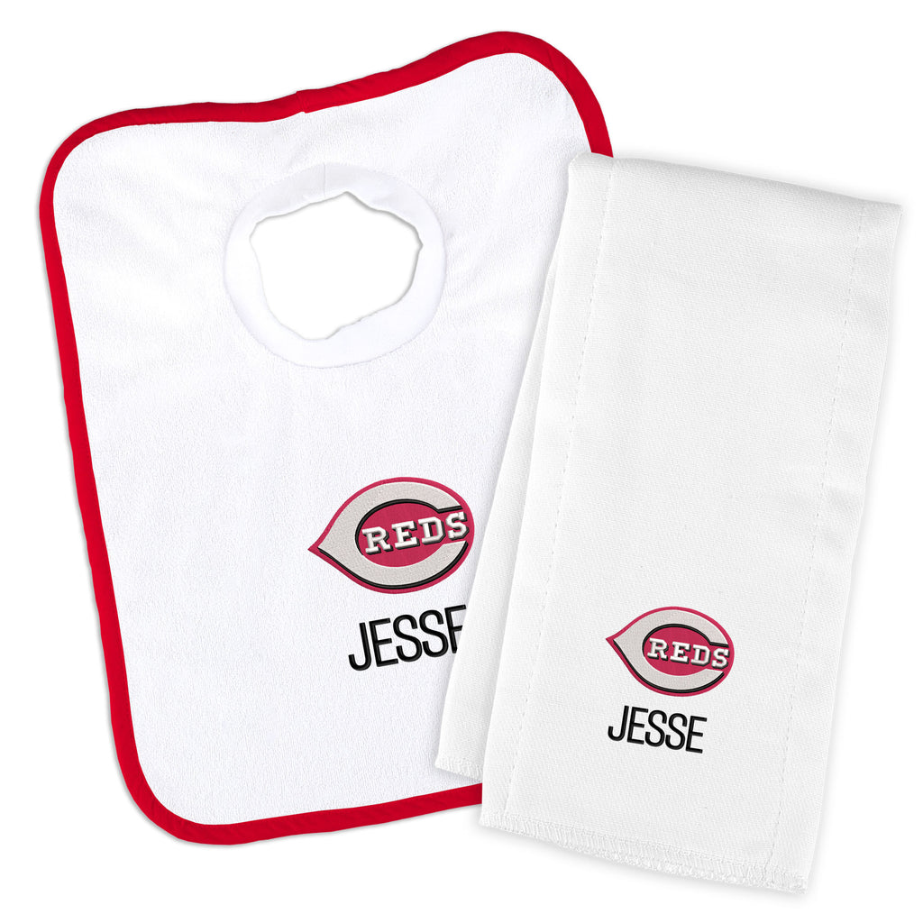 Get your future fan on the right track with Personalized Cincinnati Reds baby gear from Designs by Chad & Jake! Designs by Chad & Jake has personalized newborn, infant, toddler & kids gear for the littlest sports fan in your life! Before your little one is even crawling, you can make sure they're decked out in team colors and logos for your family's first game together. As your little one grows, you can keep them suited up for their future debut with all of our personalized gear. Whether you're looking for an adorable Cincinnati Reds plush bear or a bib to make sure your little one stays clean, Designs by Chad & Jake has all of the Officially Licensed gear to make sure your little one is a fan from day one. With beautiful gift wrapping available, shop for the perfect gift and make sure it arrives in style.