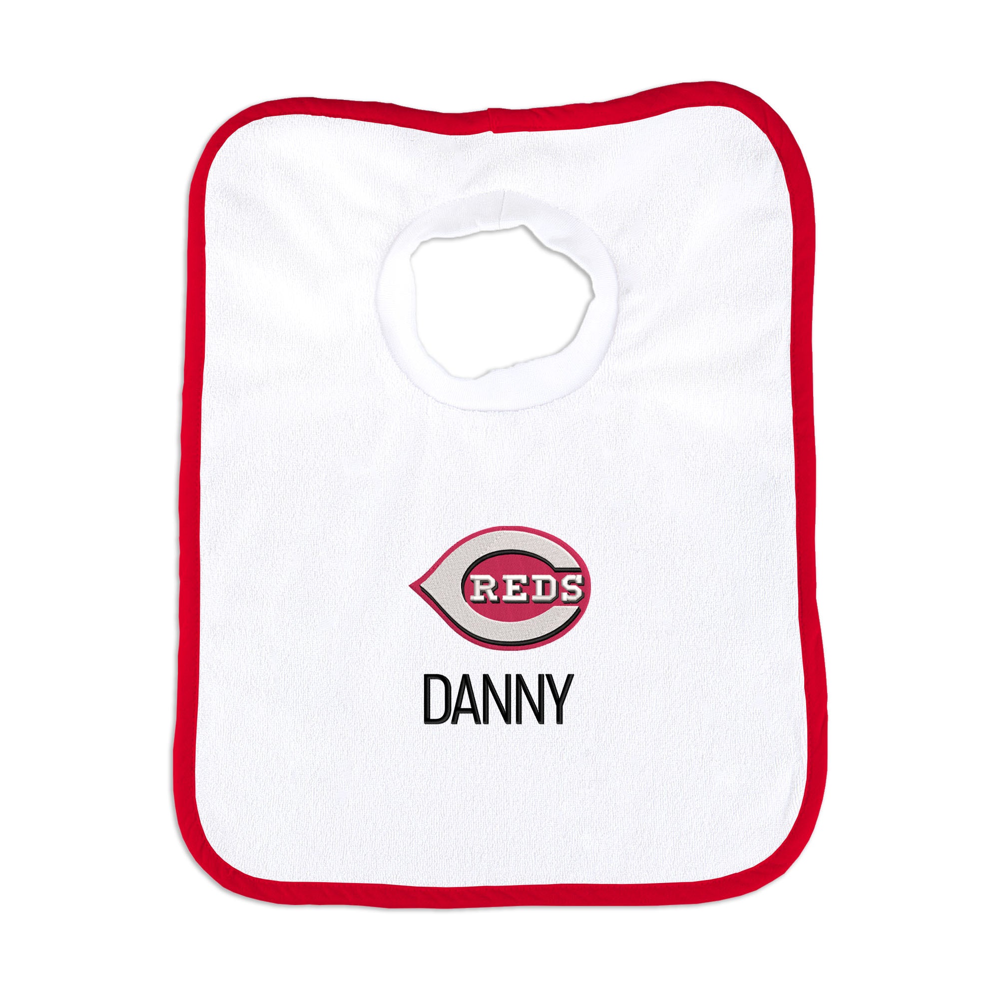 Enhanced with an embroidered Cincinnati Reds logo, this bib proudly showcases your family's passion for the game. Moreover, you can personalize the bib with an embroidered name or phrase, adding a unique touch to your baby's Reds-inspired ensemble.