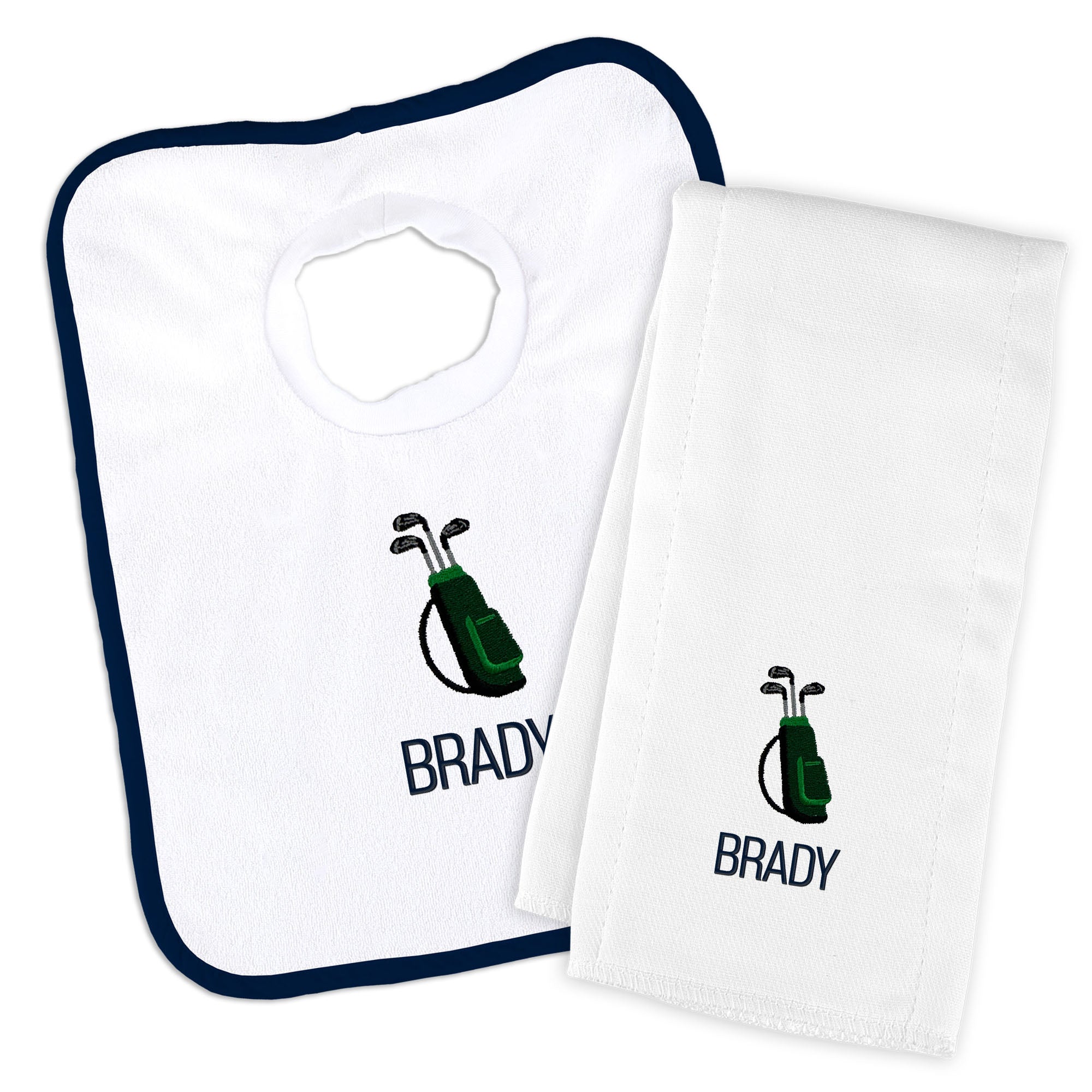 Personalized Basic Bib & Burp Cloth Set with Golf