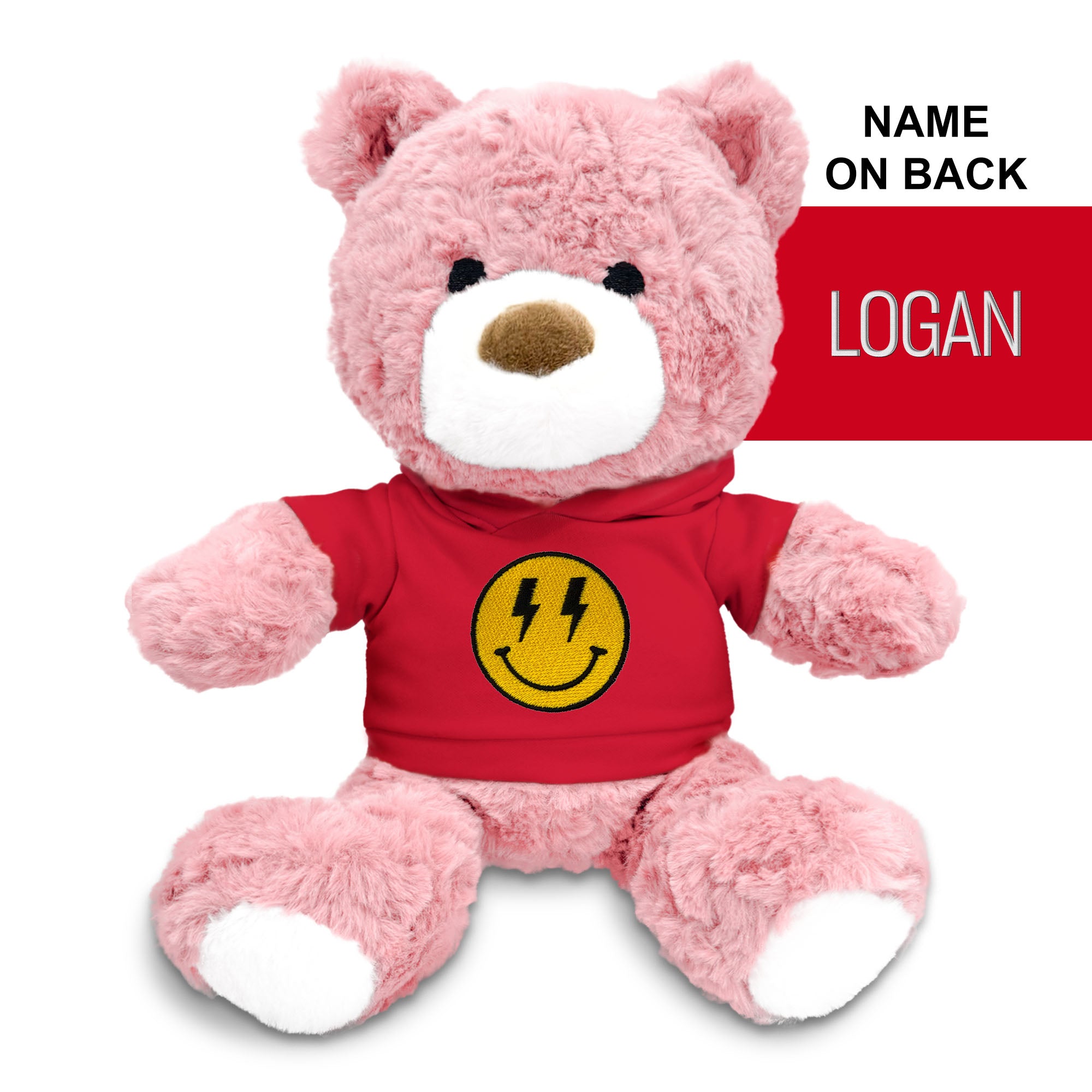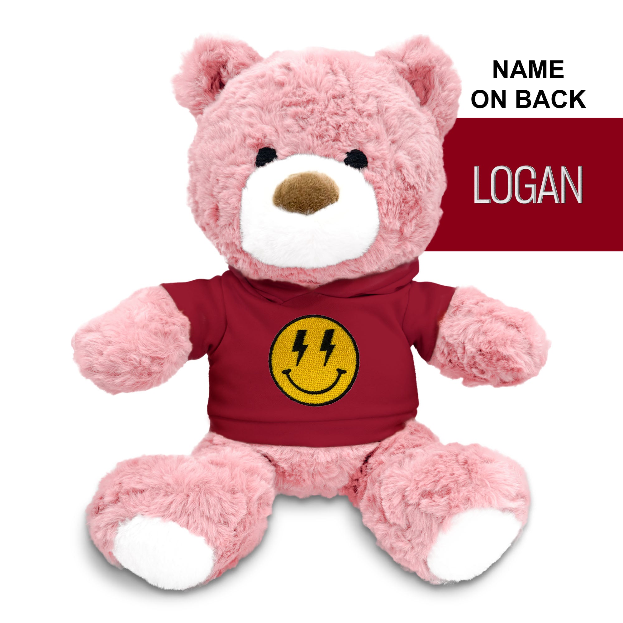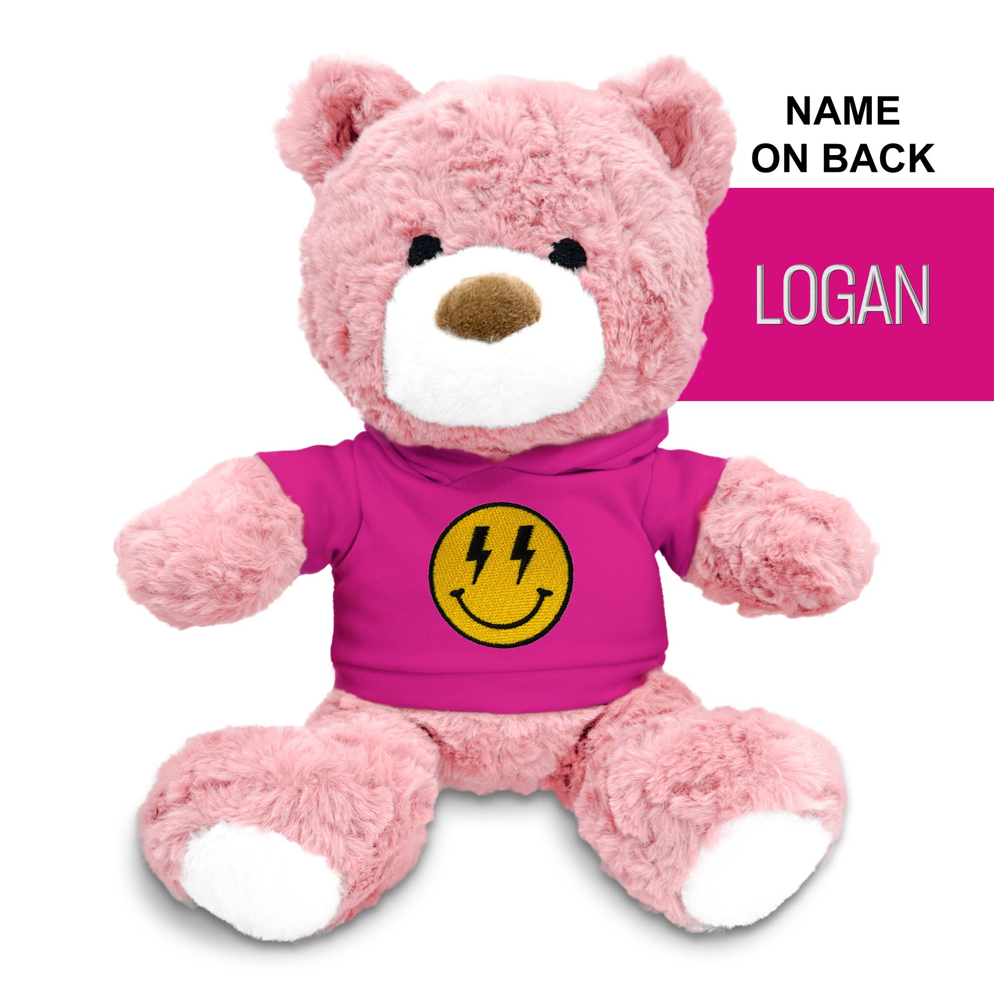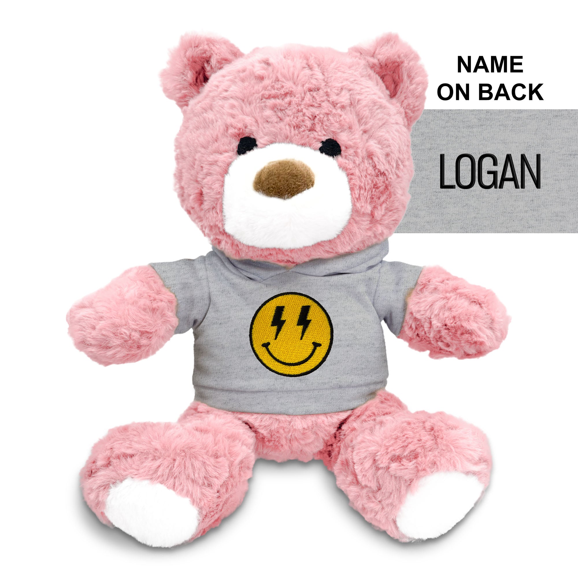 Personalized Basic 10" Pink Plush Bear with Smiley Flash