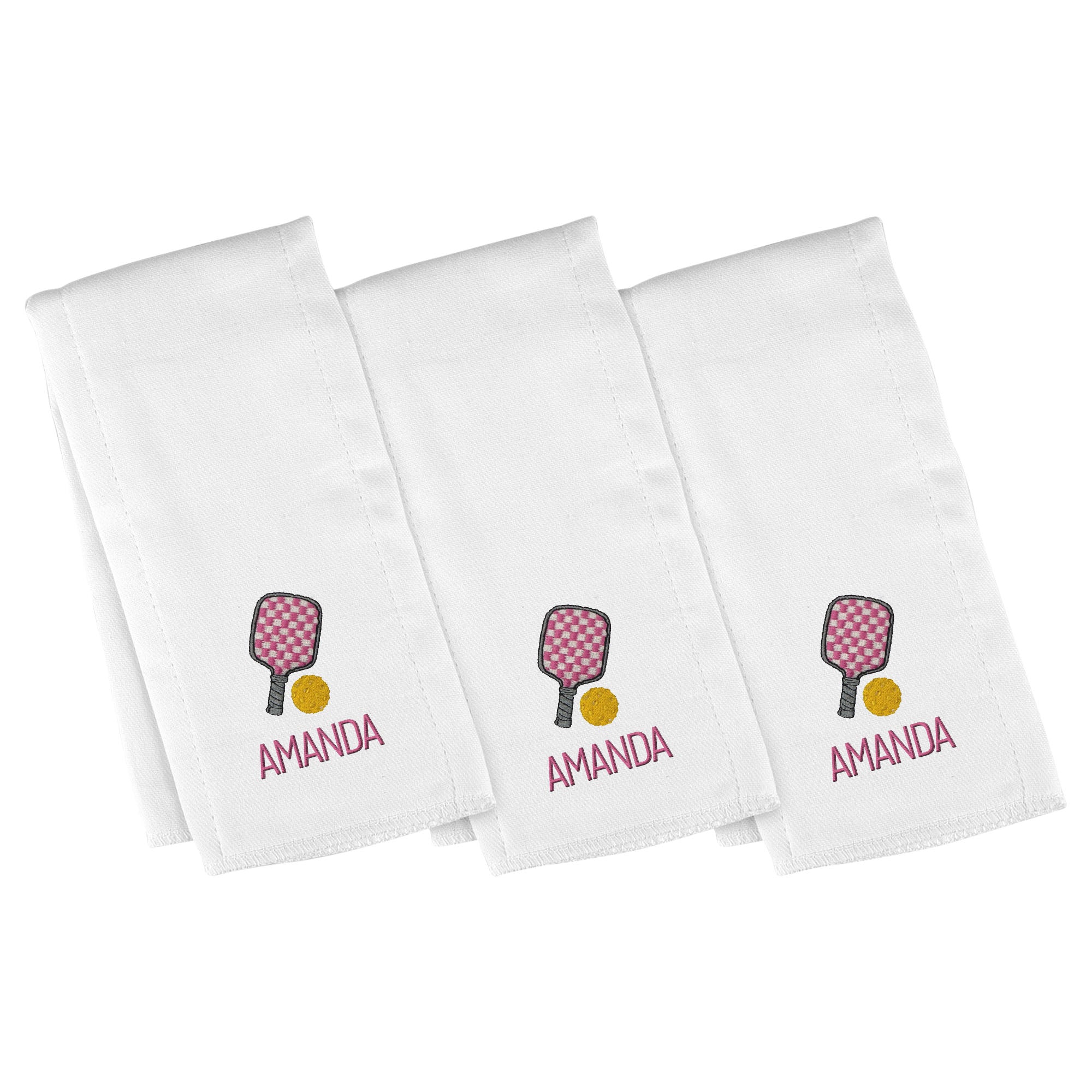 Personalized Basic Burp Cloth 3 Pack with Pickleball Racket Pink