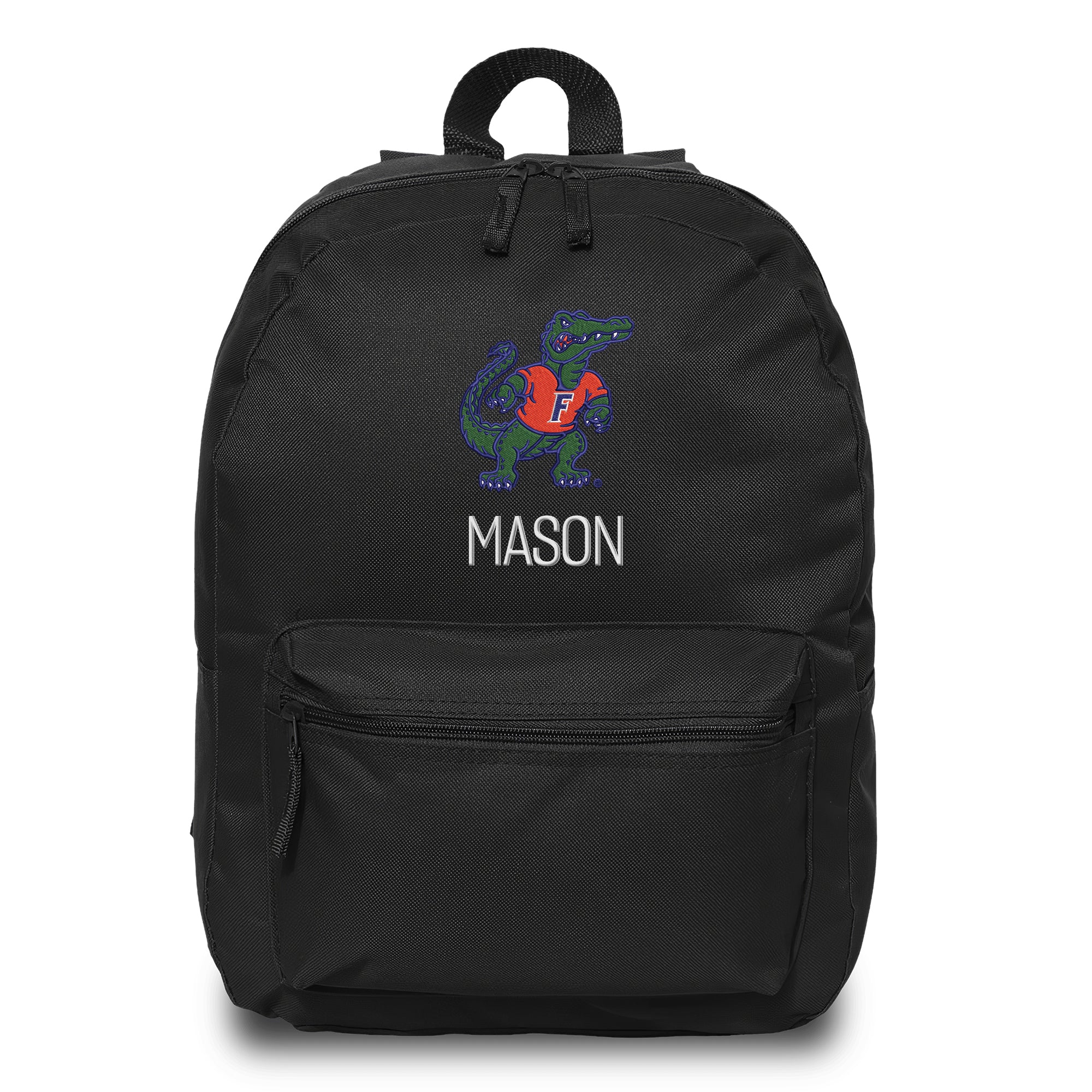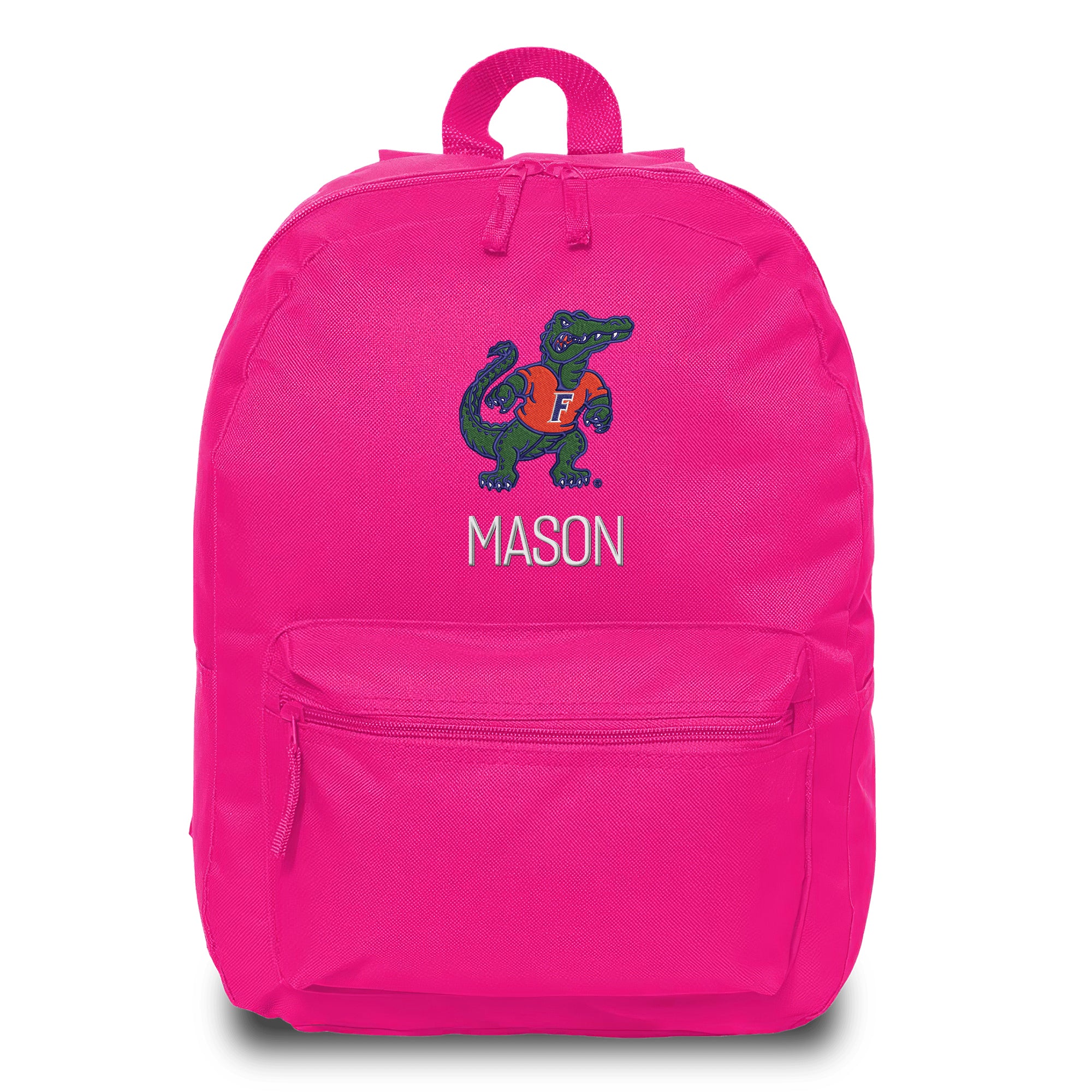 This Florida Gators backpack is the perfect way for your child to show off their fandom wherever they go! With padded adjustable straps and an extra front zipper compartment, this backpack has everything your little one needs. This bag is embroidered with the Florida Gators logo and your little one’s name or nickname underneath! This backpack measures 16” tall.