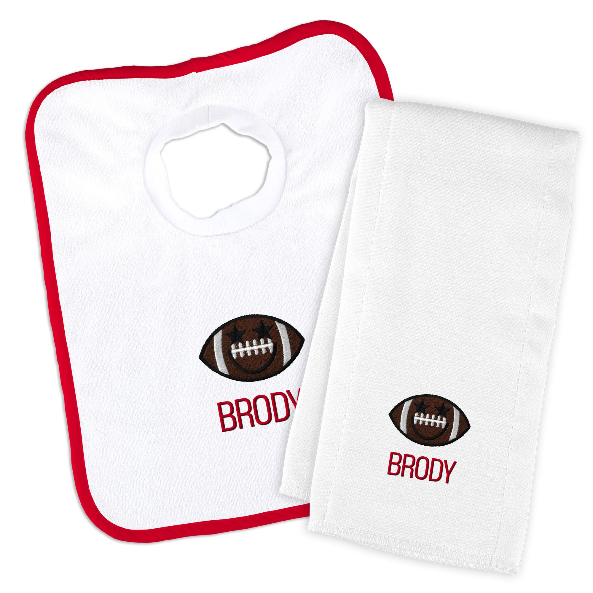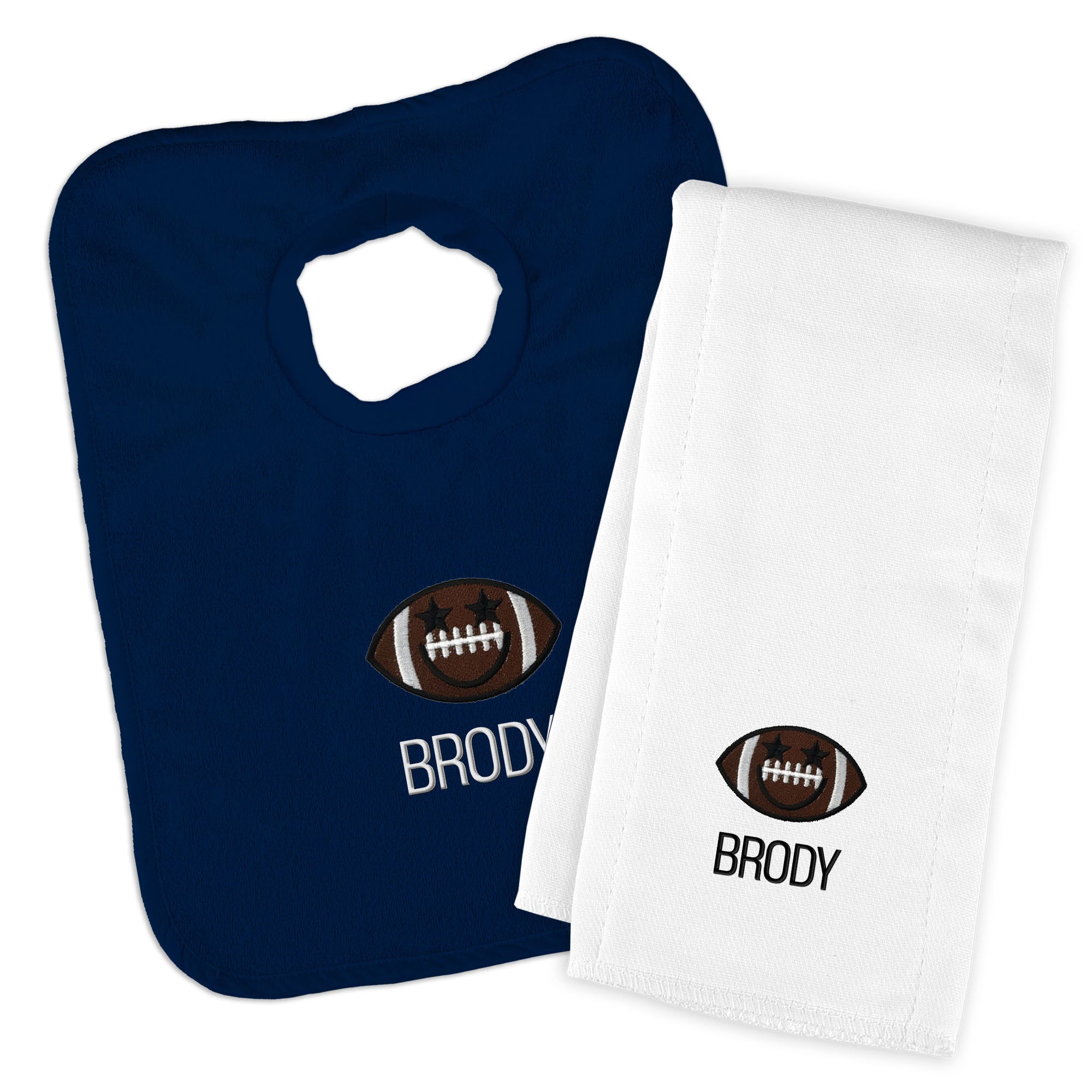Personalized Basic Bib & Burp Cloth Set with Football Smiley