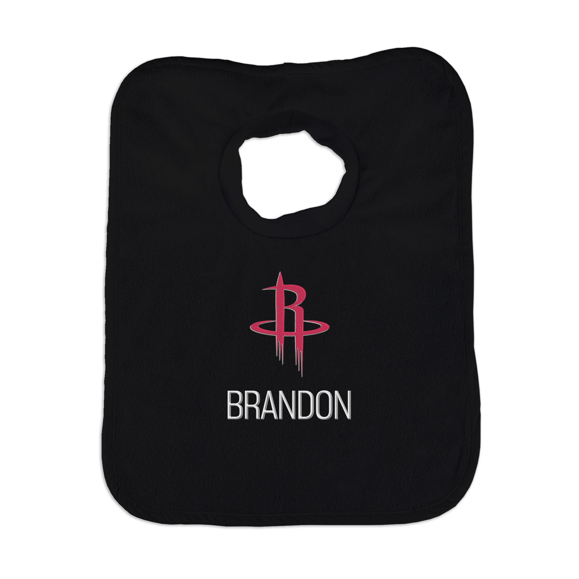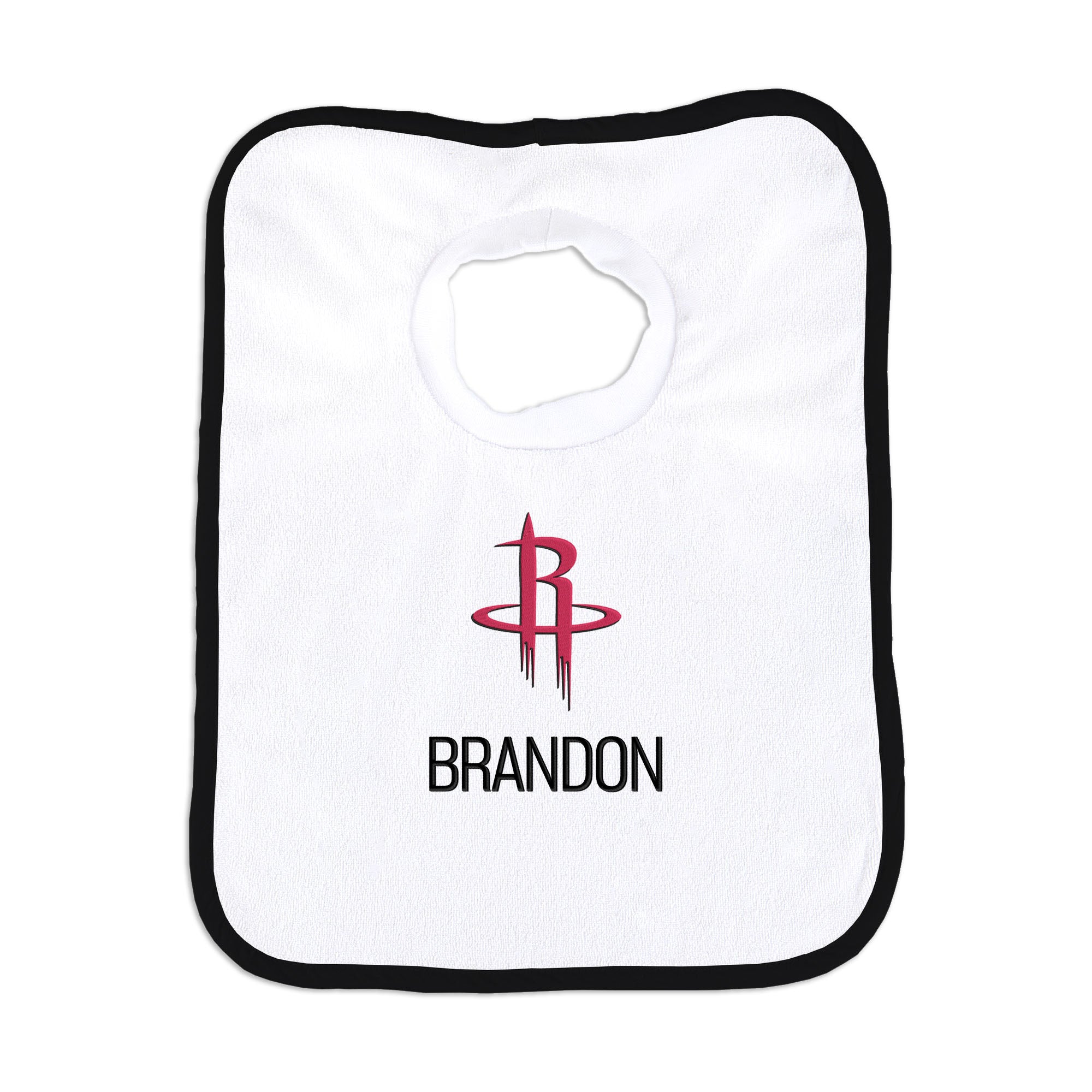 Our Personalized Houston Rockets Bib is the perfect accessory for every baby Rockets fan. The Rockets bib slips on easily over baby’s head, with a neck hole that is specially designed for extra comfort with super soft, gently gathered stretch cotton. Each bib is embroidered with the Rockets logo and your little one’s name or nickname. Makes a wonderful gift for new Rockets babies and their families.
