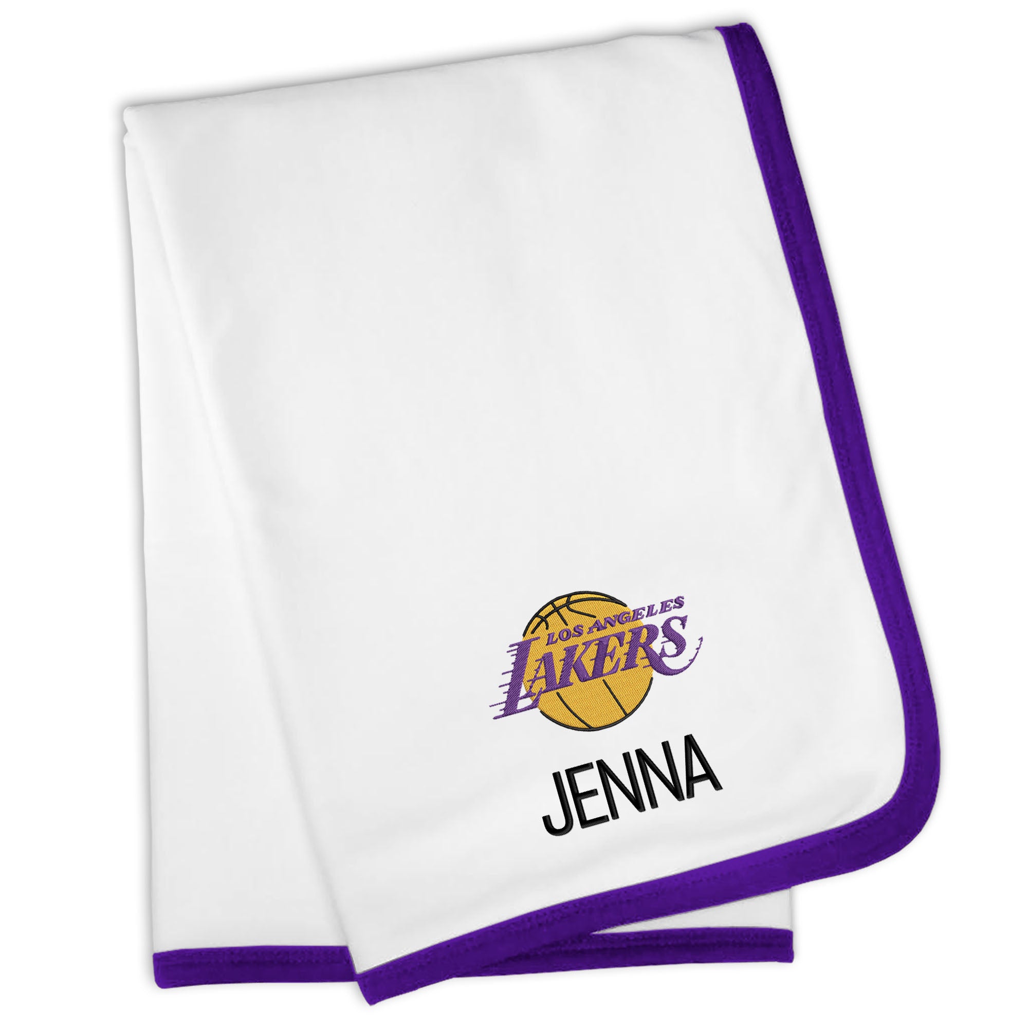 Our Personalized Los Angeles Lakers Blanket is sized just right for a baby basketball fan. Constructed from super soft 100% cotton jersey knit and trimmed in Lakers team colors, this blanket is perfect for walks in the stroller or swaddling at bedtime. Each blanket is embroidered with the official Lakers logo and your little one’s name or nickname.