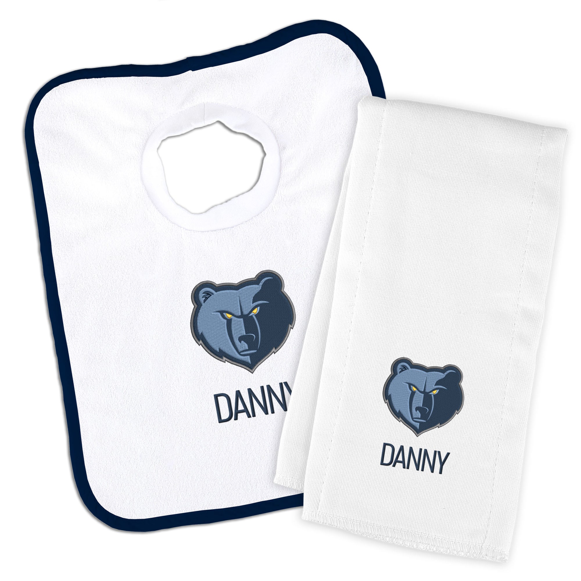 Our Personalized Memphis Grizzlies Bib and Burp Cloth Set is a thoughtful and useful gift for every baby Grizzlies fan. The Grizzlies burp cloth is generously sized and made of soft, absorbent 100% cotton, and the Grizzlies bib has a soft, stretchable cotton neck hole for baby’s comfort. Parents, the bib slips easily over your baby's head and features a soft, gently gathered stretch cotton neck hole for maximum comfort; also, the burp cloth is a must-have asset.