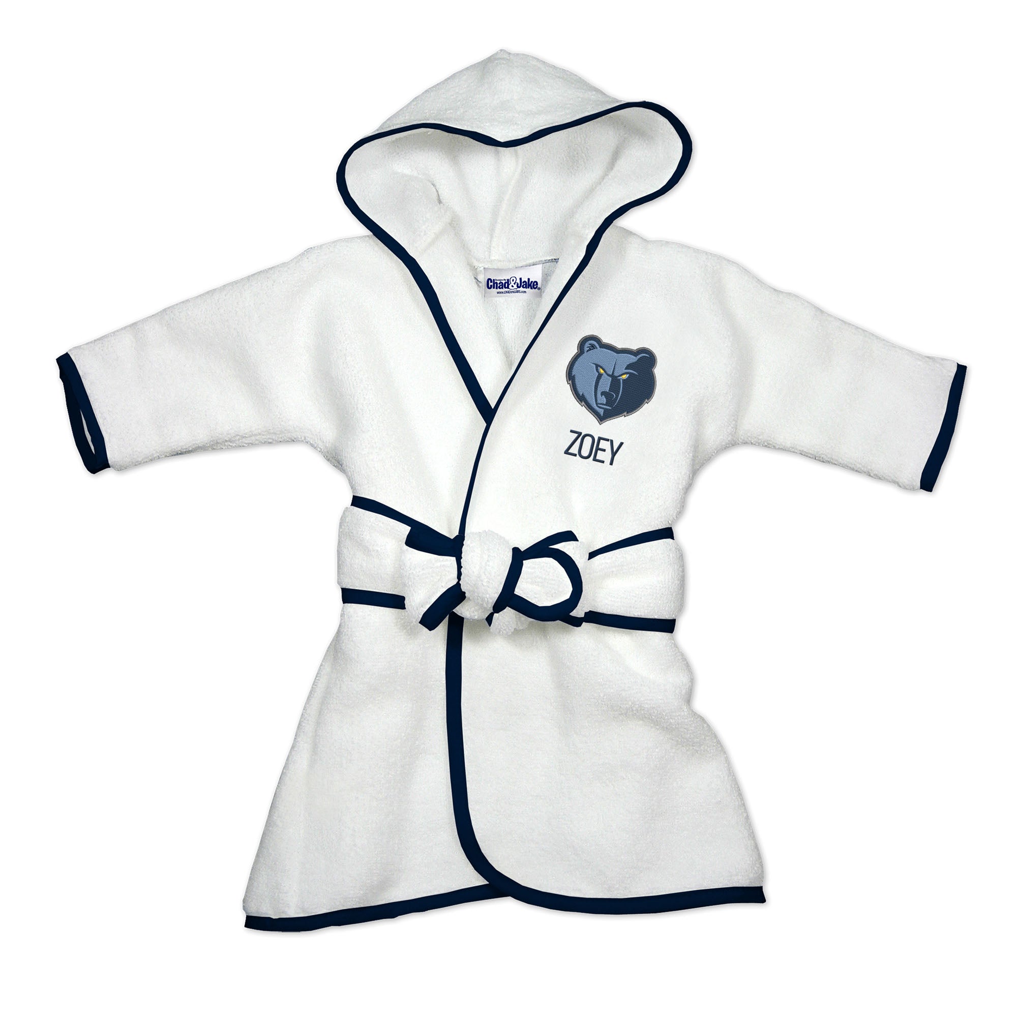 Our Personalized Memphis Grizzlies Infant Robe is a fun and practical accessory for every little Grizzlies fan. Each robe is embroidered with the official Memphis Grizzlies logo and your own little one’s name or nickname. What a great way for even the youngest fans to support their team and show Grizzlies pride! Kids can wrap up after a bath or shower, cover up and dry off after swimming, or relax at home in the comfort of this plush Grizzlies robe sized just for them.