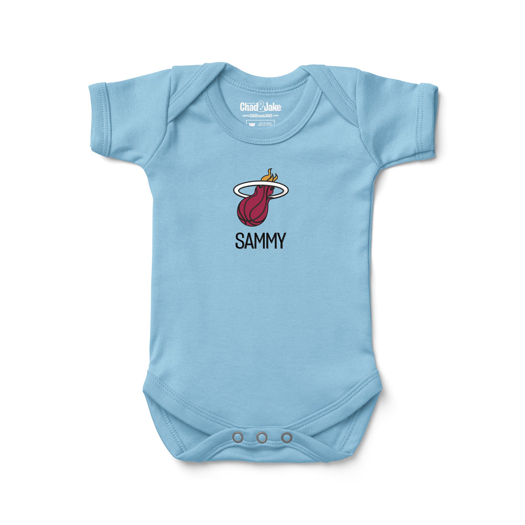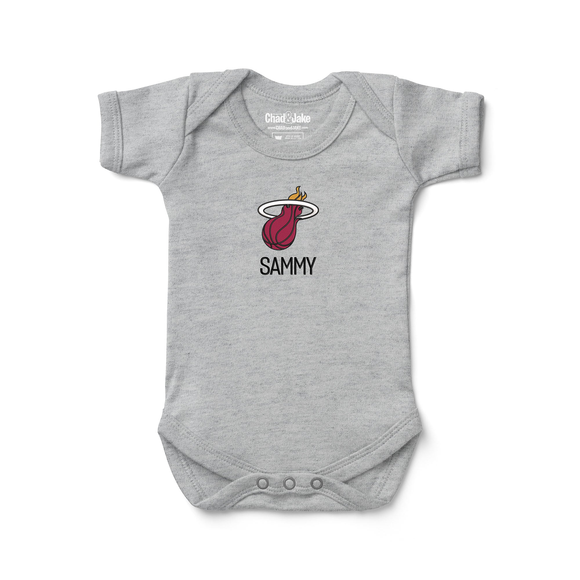 As a proud member of the NBA and home to AmericanAirlines Arena, the Miami HEAT have a rich history of success, including numerous championships and awards. From retired players like Alonzo Mourning and Shaquille O'Neal to current stars like Jimmy Butler and Bam Adebayo, the Miami HEAT have always had a talented roster. Cheer on the team and show your support with this personalized bodysuit.