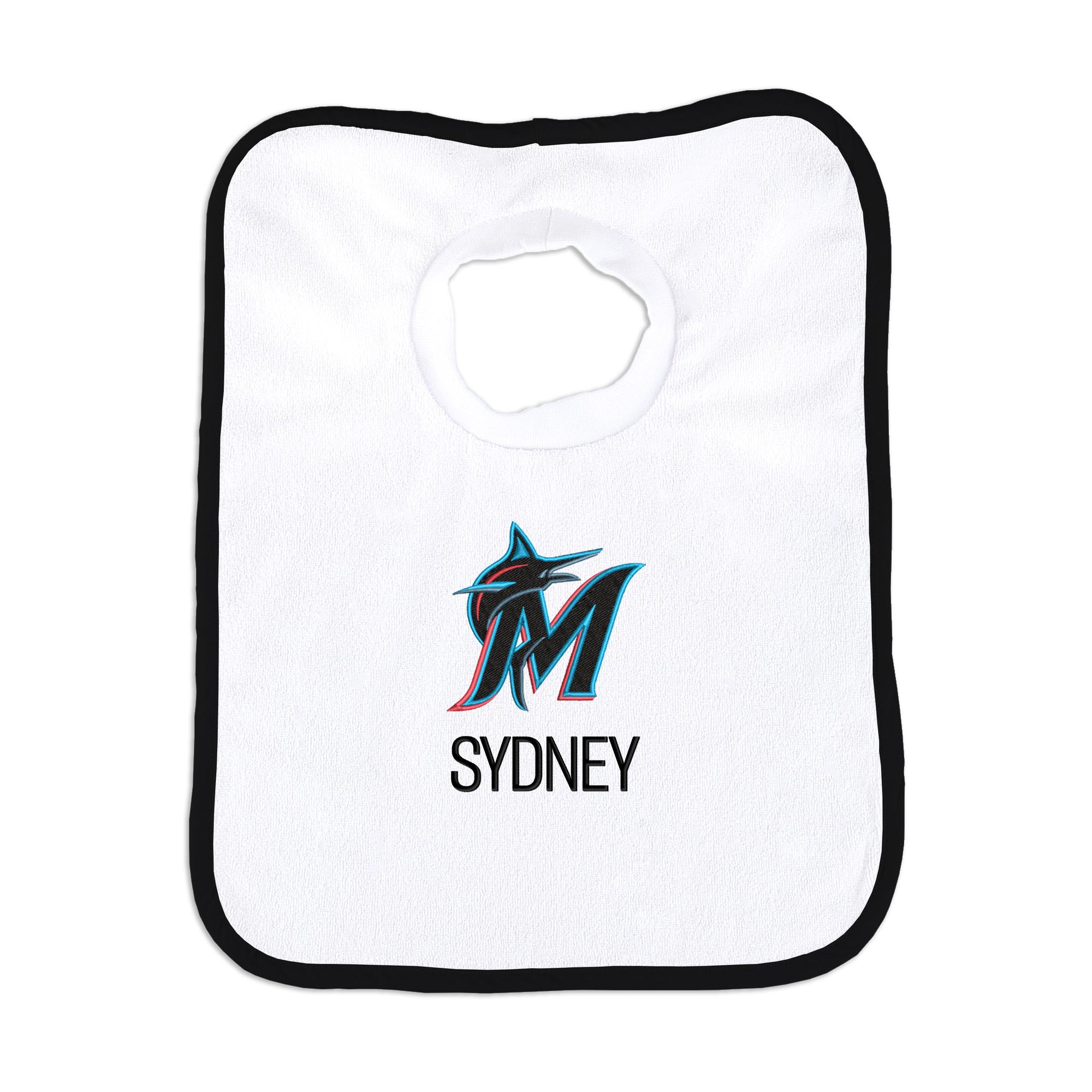 Enhanced with an embroidered Miami Marlins logo, this bib proudly displays your family's passion for the game. Additionally, personalize the bib with an embroidered name or phrase, adding a unique touch to your baby's Marlins-themed collection.
