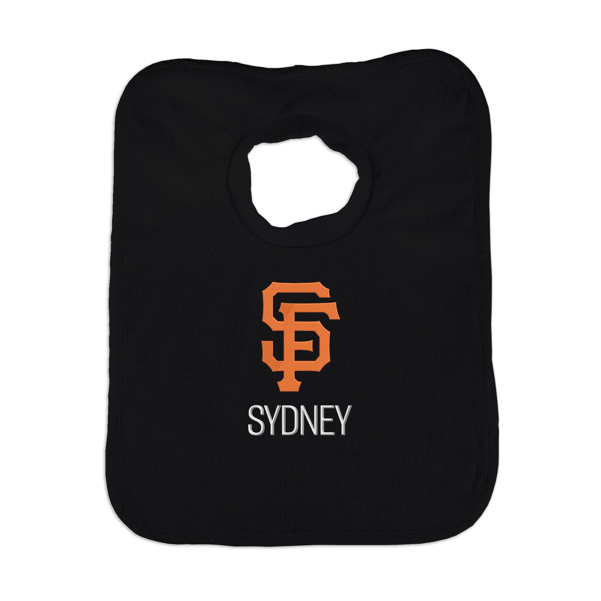 Enhanced with an embroidered San Francisco Giants logo, this bib proudly displays your family's passion for the game. Additionally, personalize the bib with an embroidered name or phrase, adding a unique touch to your baby's Giants-themed collection.