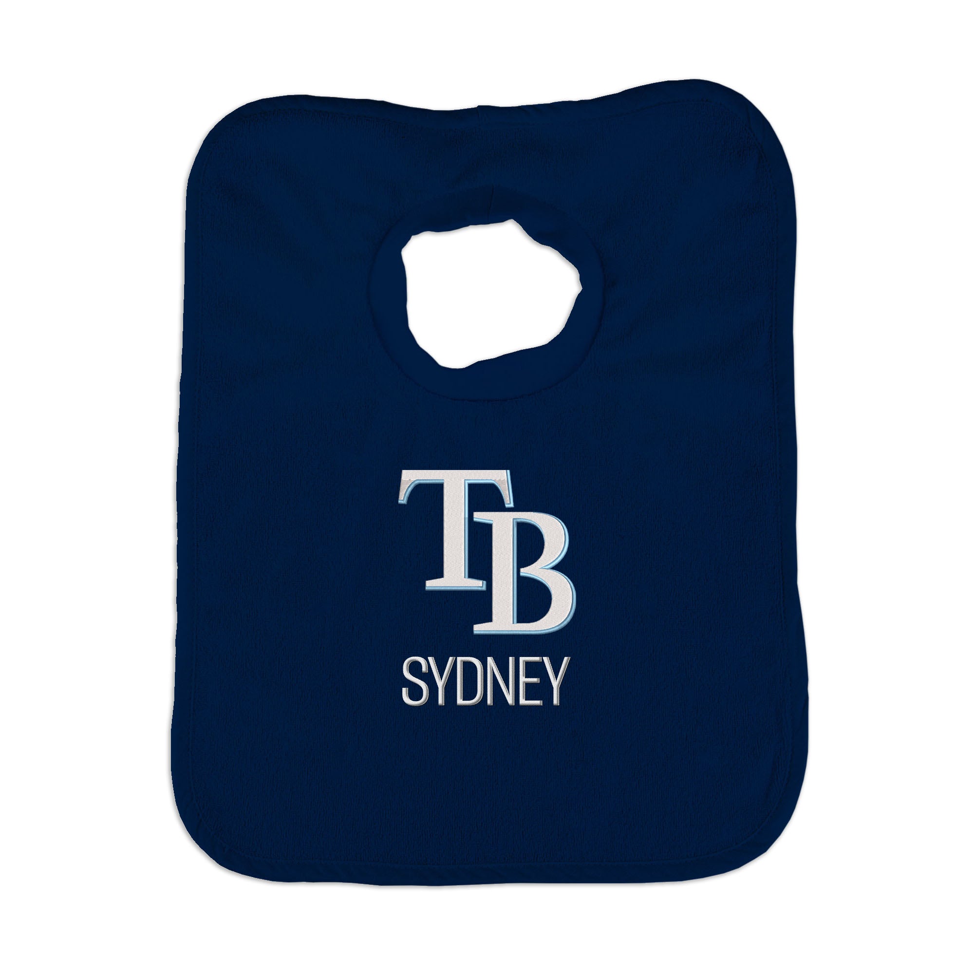 Enhanced with an embroidered Tampa Bay Rays logo, this bib proudly displays your family's passion for the game. Additionally, personalize the bib with an embroidered name or phrase, adding a unique touch to your baby's Rays-themed collection.