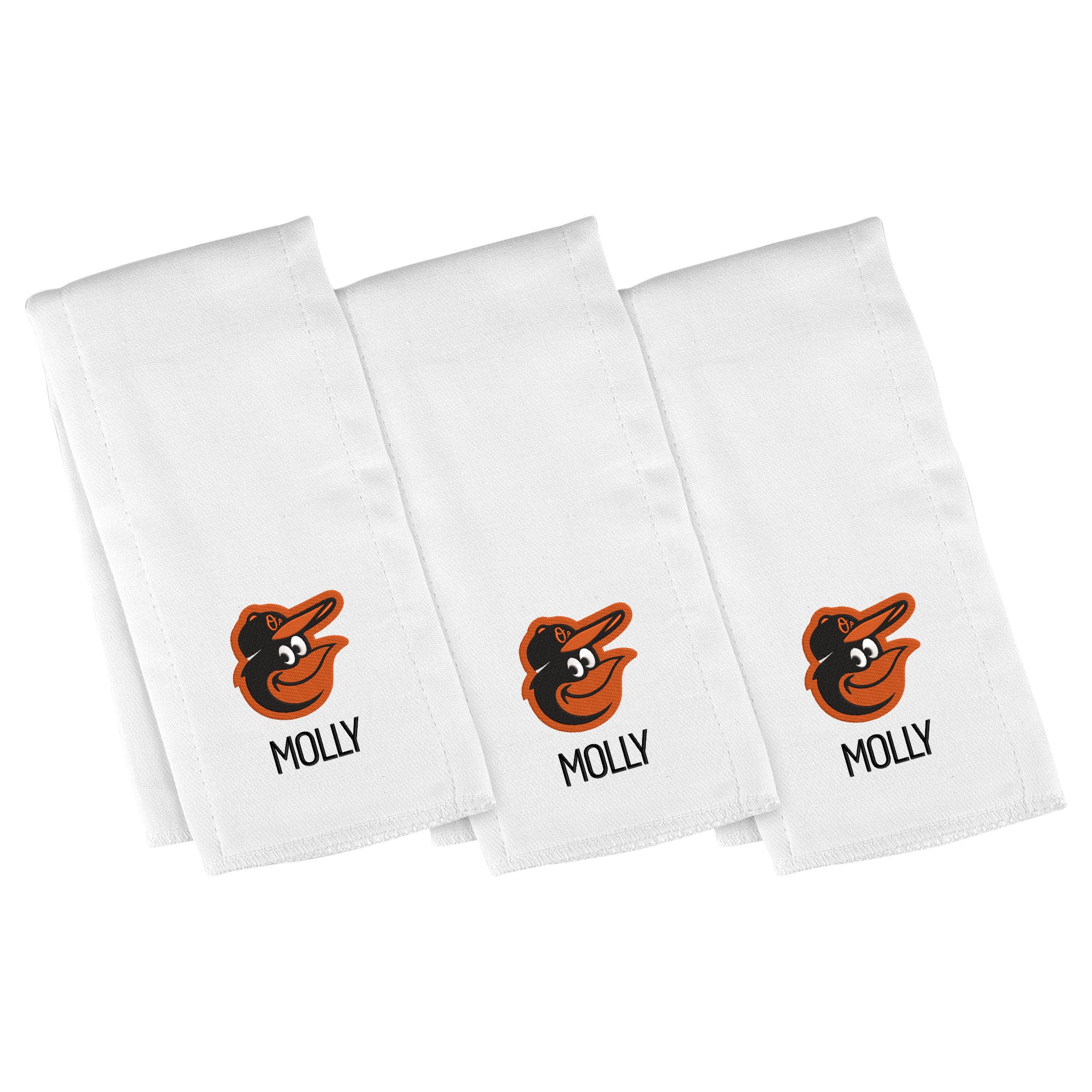 Personalized Baltimore Orioles 3-Pack Burp Cloths are perfect for daily cleanups!