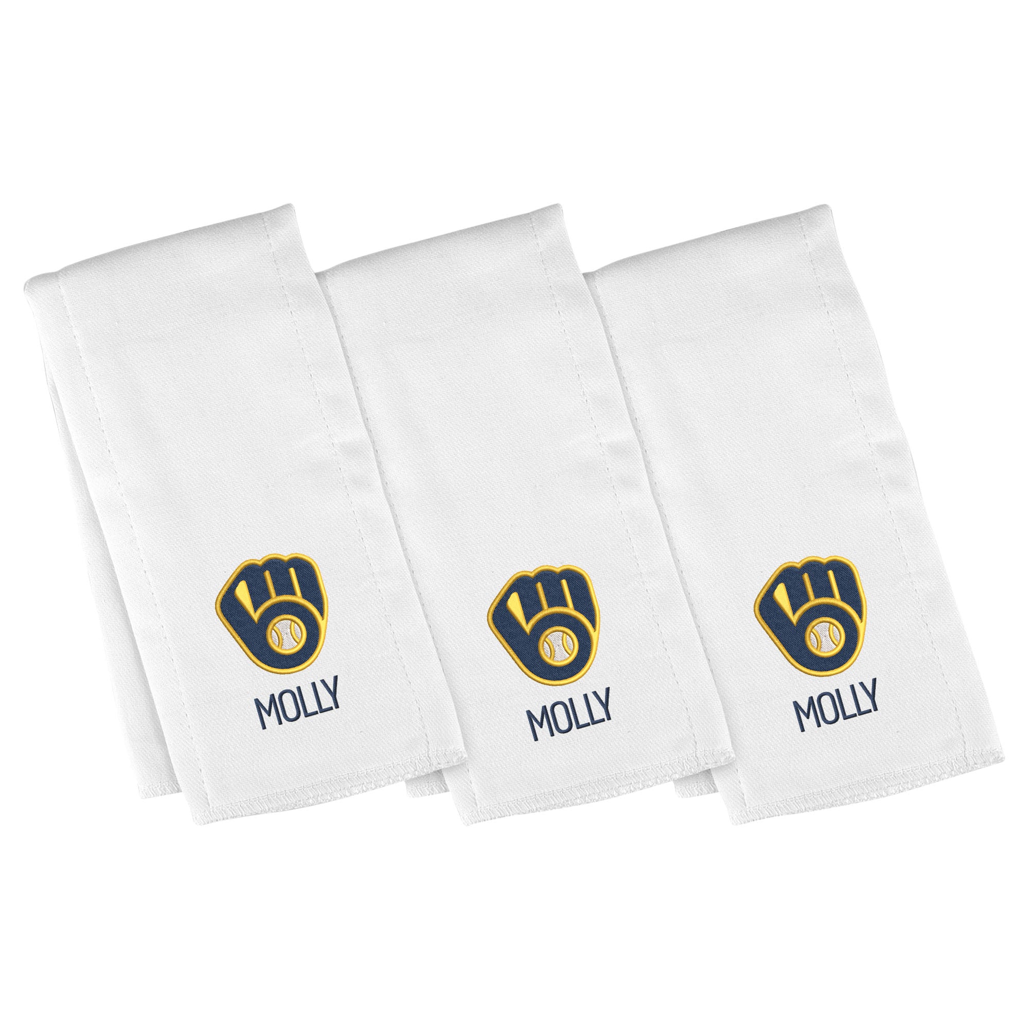 Personalized Milwaukee Brewers 3-Pack Burp Cloths are perfect for daily cleanups!