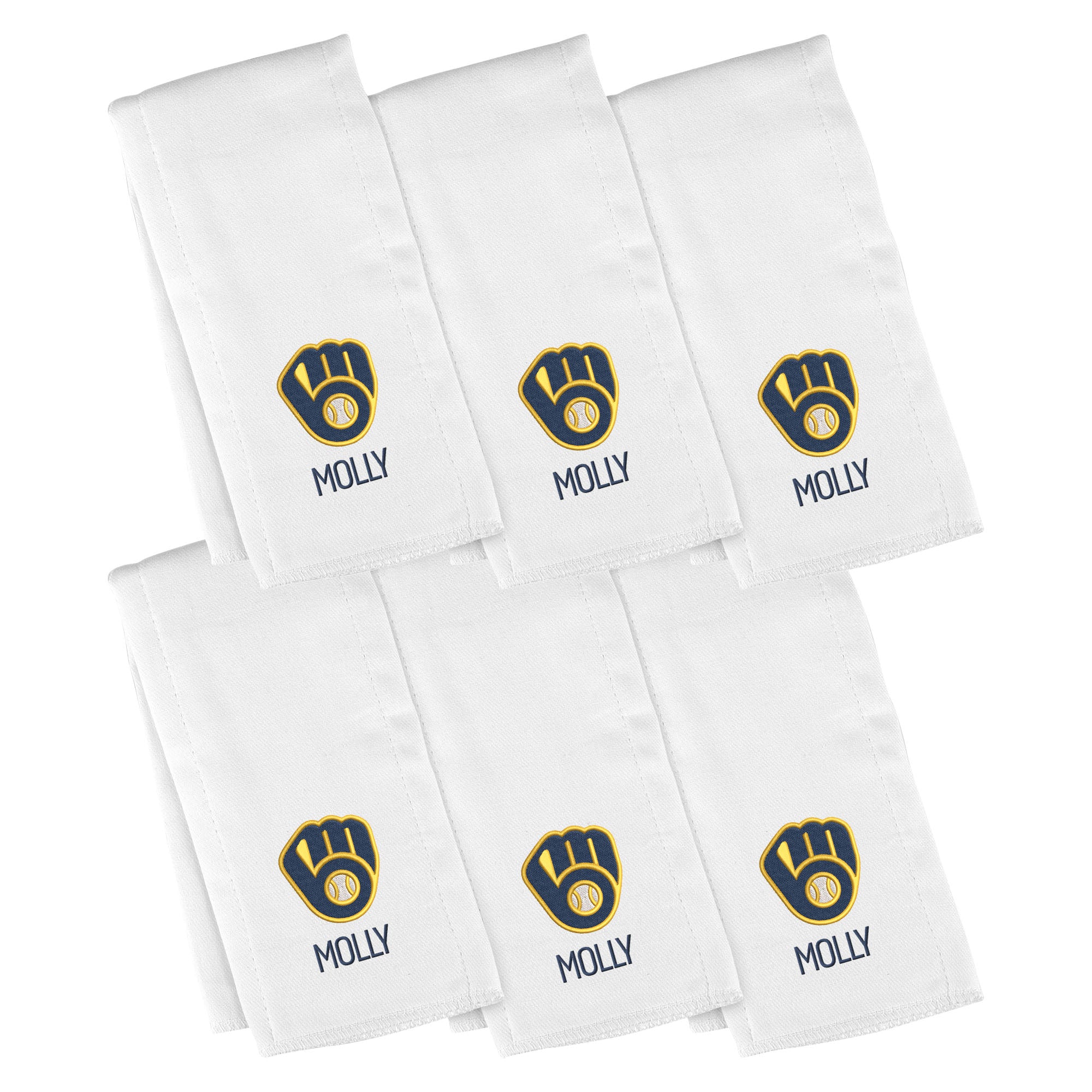 Personalized Milwaukee Brewers 6-Pack Burp Cloths are perfect for daily cleanups!