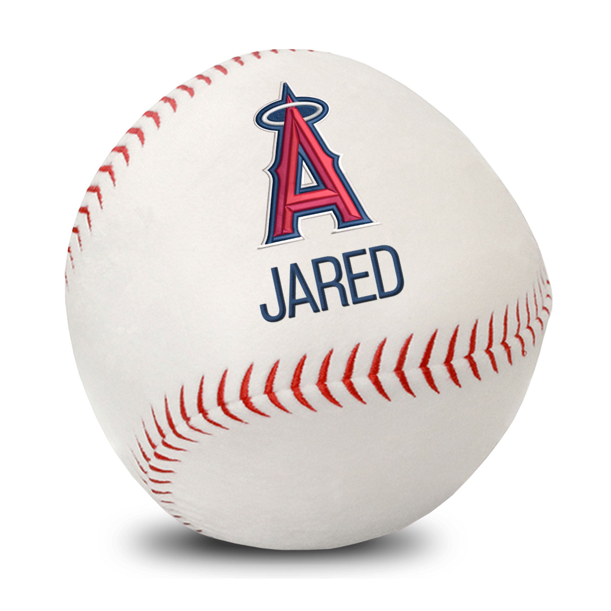 Our Personalized LA Angels Plush Baseball is a terrific gift for any family of Angels fans.  Each ball is embroidered with the official Angels logo and your little one’s name or nickname.  Add some team spirit to the decor of a bedroom or playroom with this oversize baseball, which becomes a fun plaything for toddlers and older kids.  With a removable cover for easy cleaning, our Angels ball is great for years of fun and entertainment.