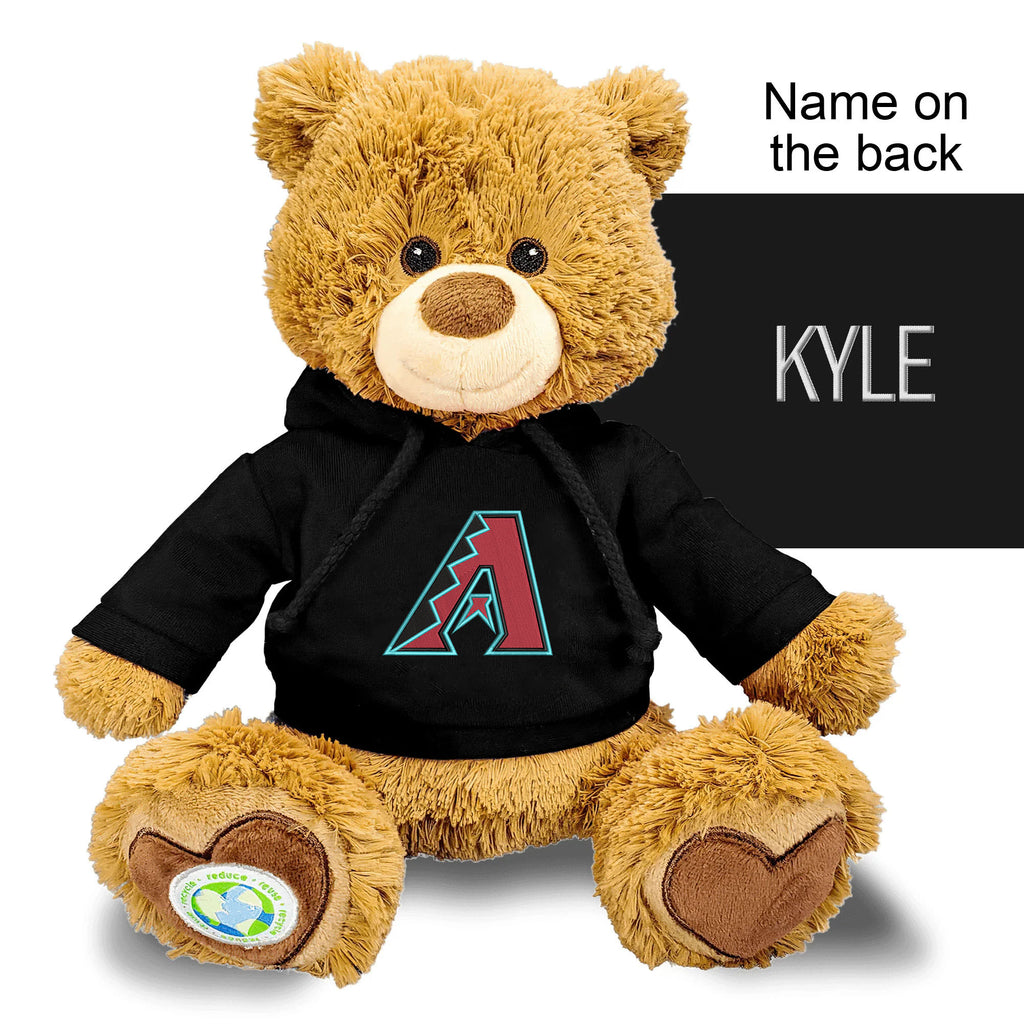 A Personalized MLB Plush Bear is the perfect way to celebrate the special person in your life! Measuring 10" tall and the perfect plush feel, new fans and old fans alike will love this plush bear! This bear is embroidered with the logo on the front and a custom name or phrase on the back! This bear is Officially Licensed for every MLB team!