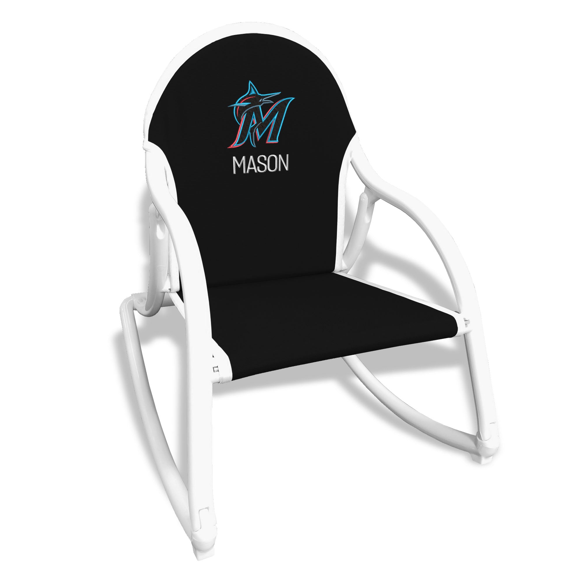 Our kid-sized Personalized Miami Marlins Rocking Chair will be the best seat in the house (and everywhere else!). This Marlins chair is not only super comfortable, but also foldable and lightweight, making it easy to transport from room to room or put away for storage. The adult weight fabric and sturdy construction ensure that your little Marlins fan will be both comfortable and safe. The rockers are 3 inches wider than the seat, so the Marlins chair is extra stable, and foot pads under the fronts of the rockers hold the chair steady so toddlers can safely climb in to sit. This Marlins rocker is also 100% water-safe, so it can be used outside in the yard, at the park, at a game or even at the beach!
