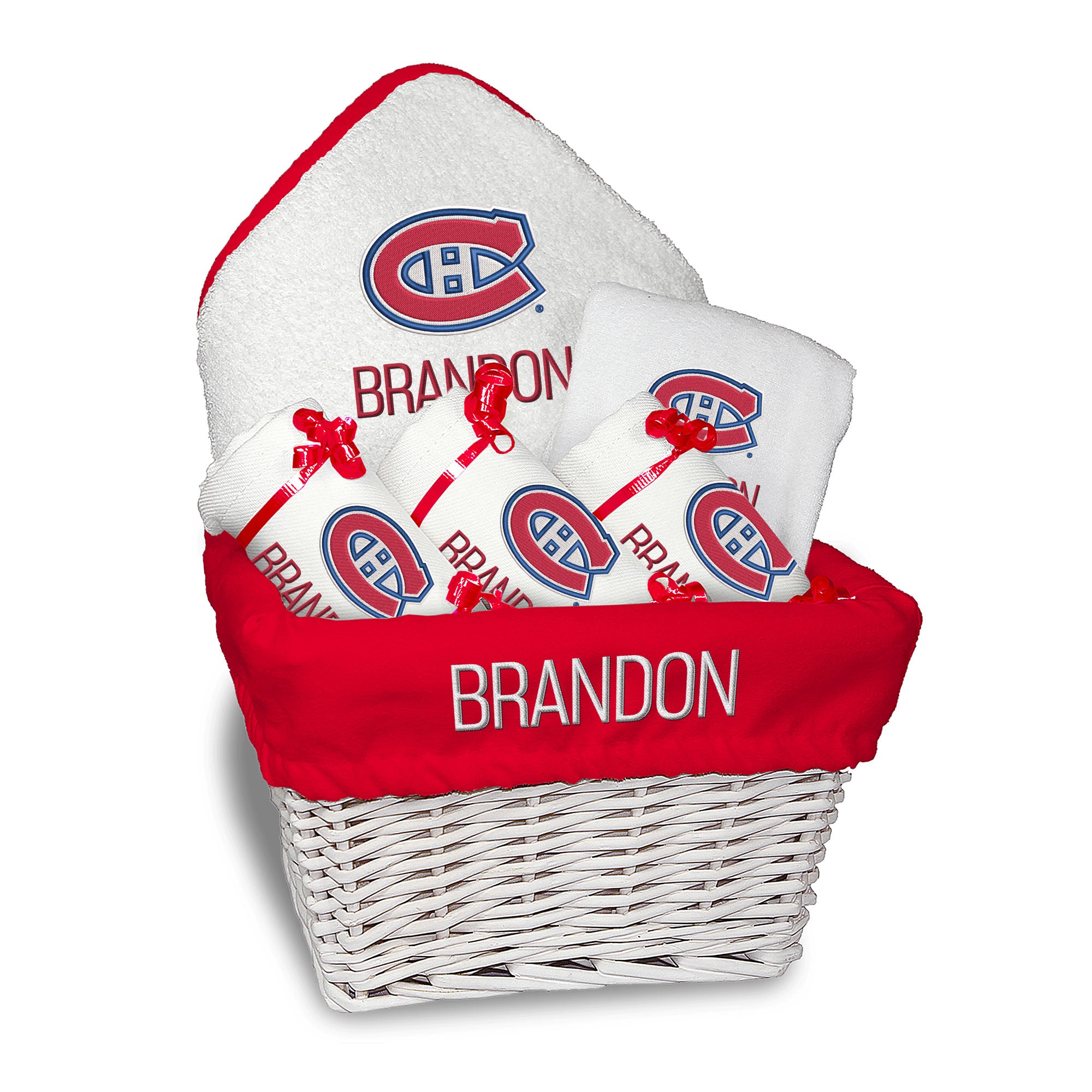 Whether you're a die-hard Canadiens fan or looking to introduce a new generation to the excitement of NHL hockey, our personalized Montreal Canadiens Medium Gift Basket is a winning choice. Show your team spirit and welcome the newest Canadiens devotee with this officially licensed, NHL-approved gift.