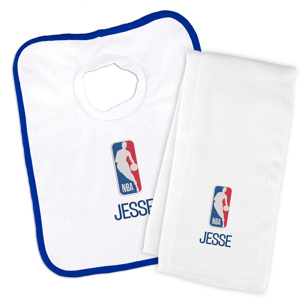 Personalized NBA Logoman Bib & Burp Cloth Set