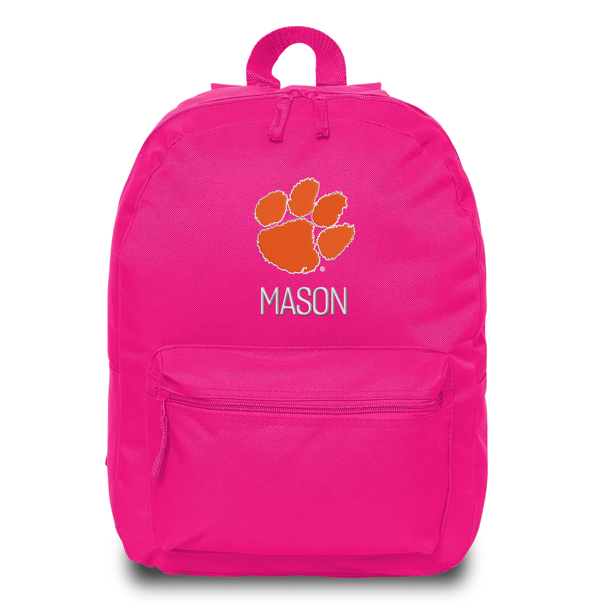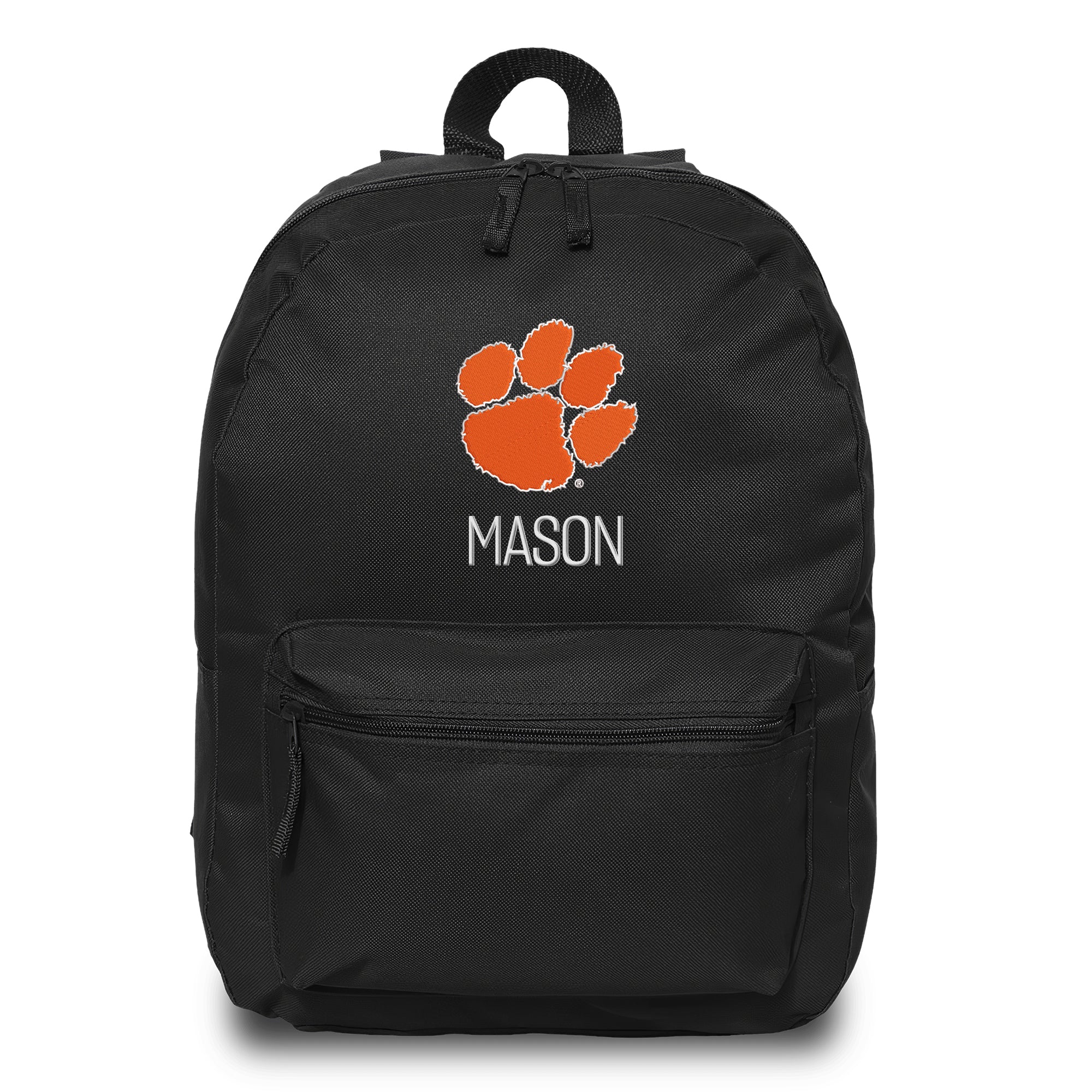 This Clemson Tigers backpack is the perfect way for your child to show off their fandom wherever they go! With padded adjustable straps and an extra front zipper compartment, this backpack has everything your little one needs. This bag is embroidered with the Clemson Tigers logo and your little one’s name or nickname underneath! This backpack measures 16” tall.