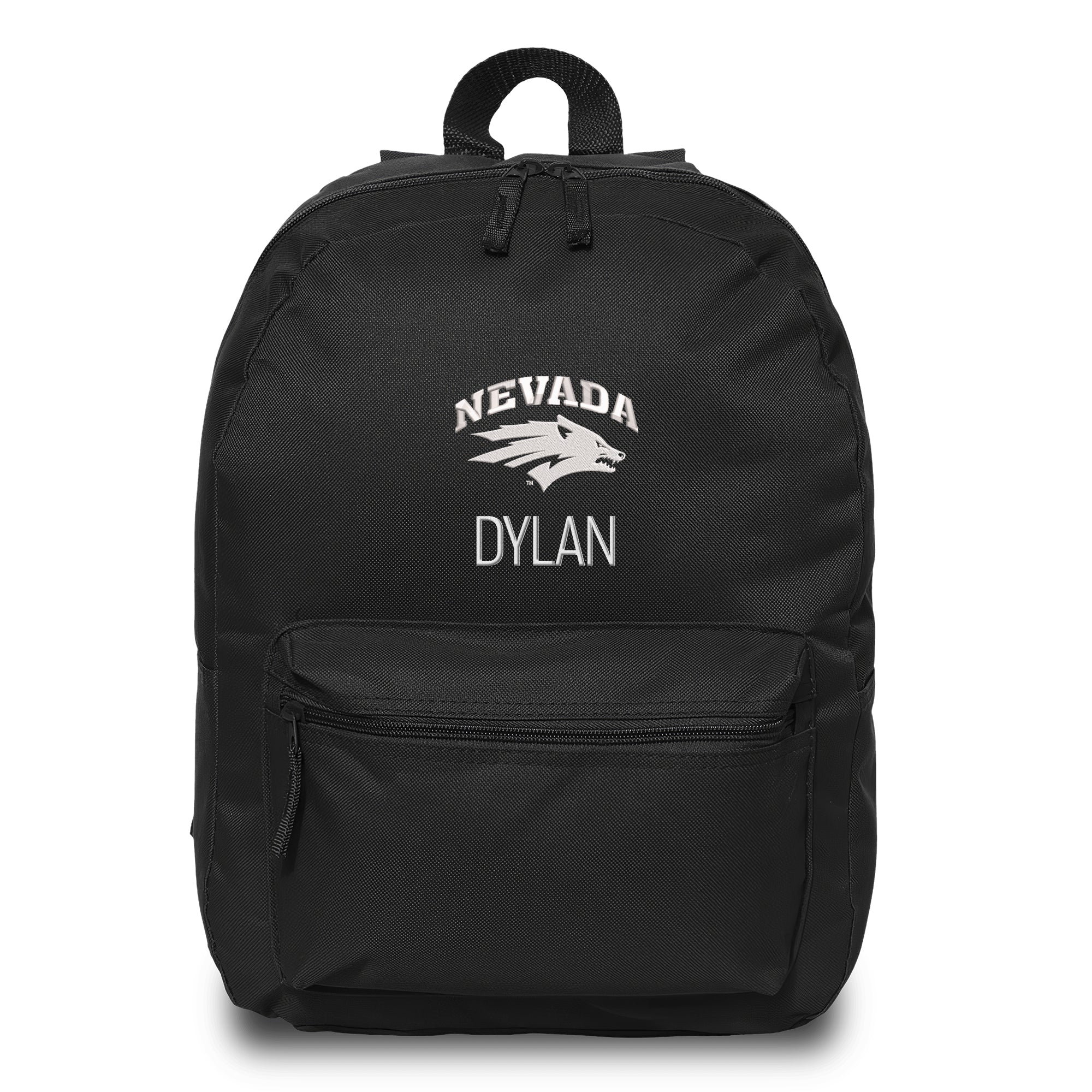 This Nevada Wolf Pack backpack is the perfect way for your child to show off their fandom wherever they go! With padded adjustable straps and an extra front zipper compartment, this backpack has everything your little one needs. This bag is embroidered with the Nevada Wolf Pack logo and your little one’s name or nickname underneath! This backpack measures 16” tall.
