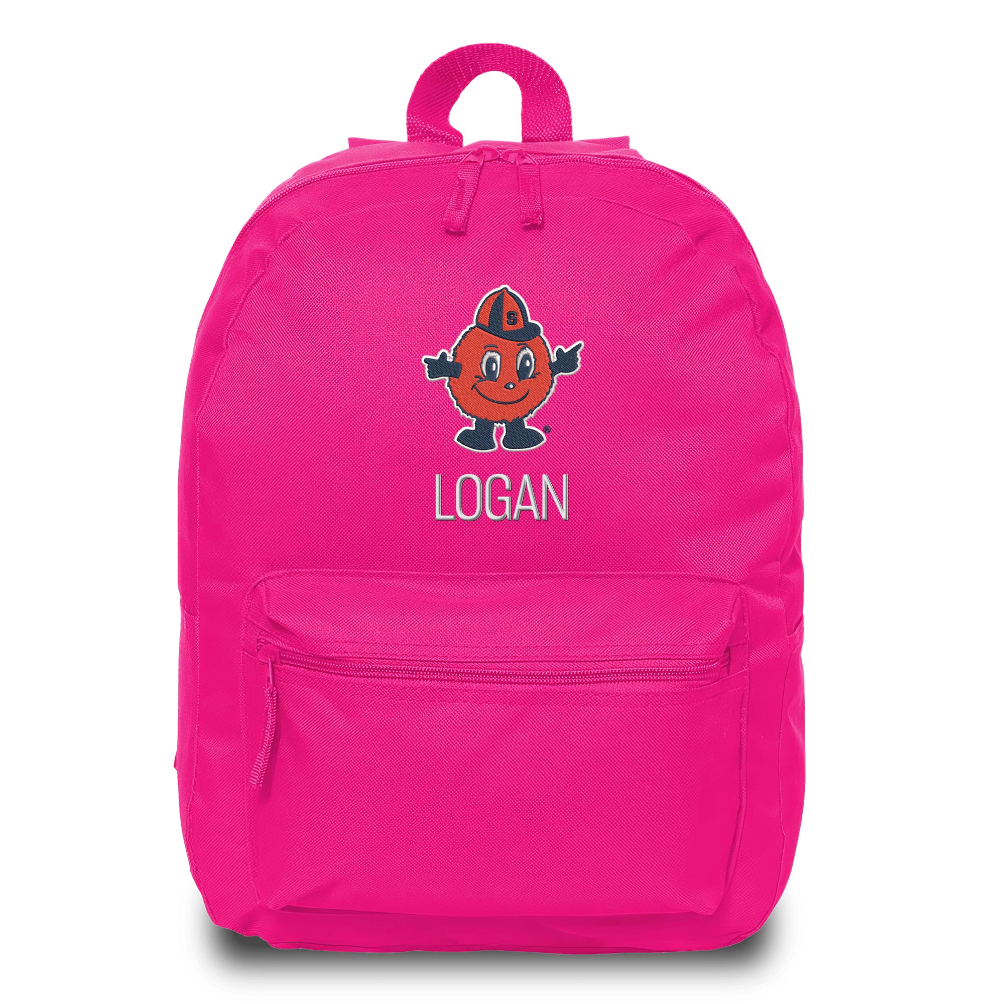 This Syracuse Orange backpack is the perfect way for your child to show off their fandom wherever they go! With padded adjustable straps and an extra front zipper compartment, this backpack has everything your little one needs. This bag is embroidered with the Syracuse Orange logo and your little one’s name or nickname underneath! This backpack measures 16” tall.
