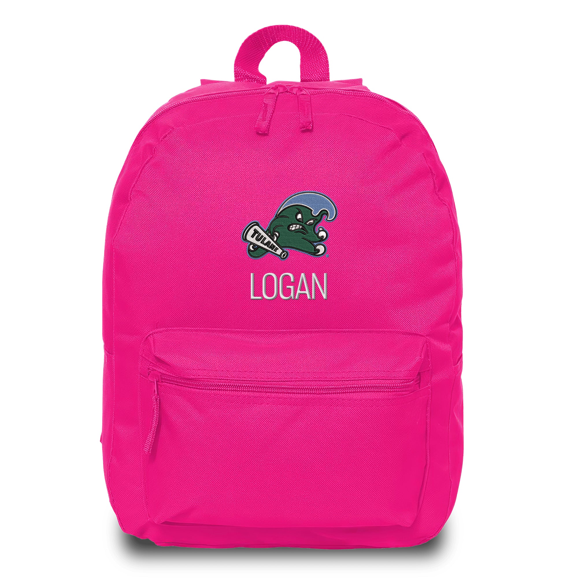 This Tulane Green Wave backpack is the perfect way for your child to show off their fandom wherever they go! With padded adjustable straps and an extra front zipper compartment, this backpack has everything your little one needs. This bag is embroidered with the Tulane Green Wave logo and your little one’s name or nickname underneath! This backpack measures 16” tall.