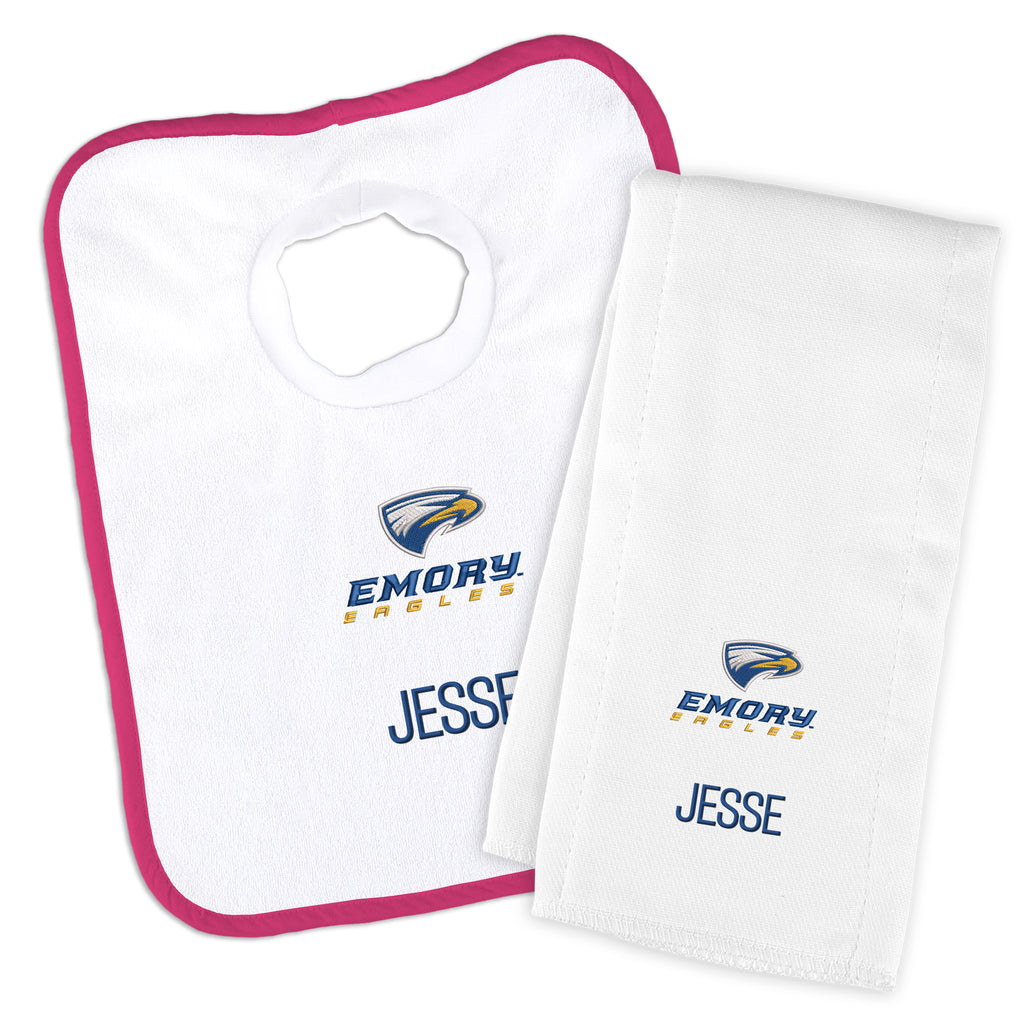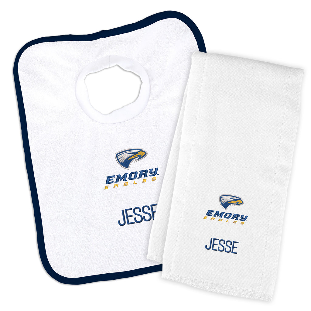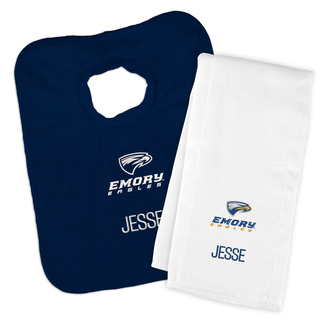 Personalized Emory Eagles Bib and Burp Cloth Set
