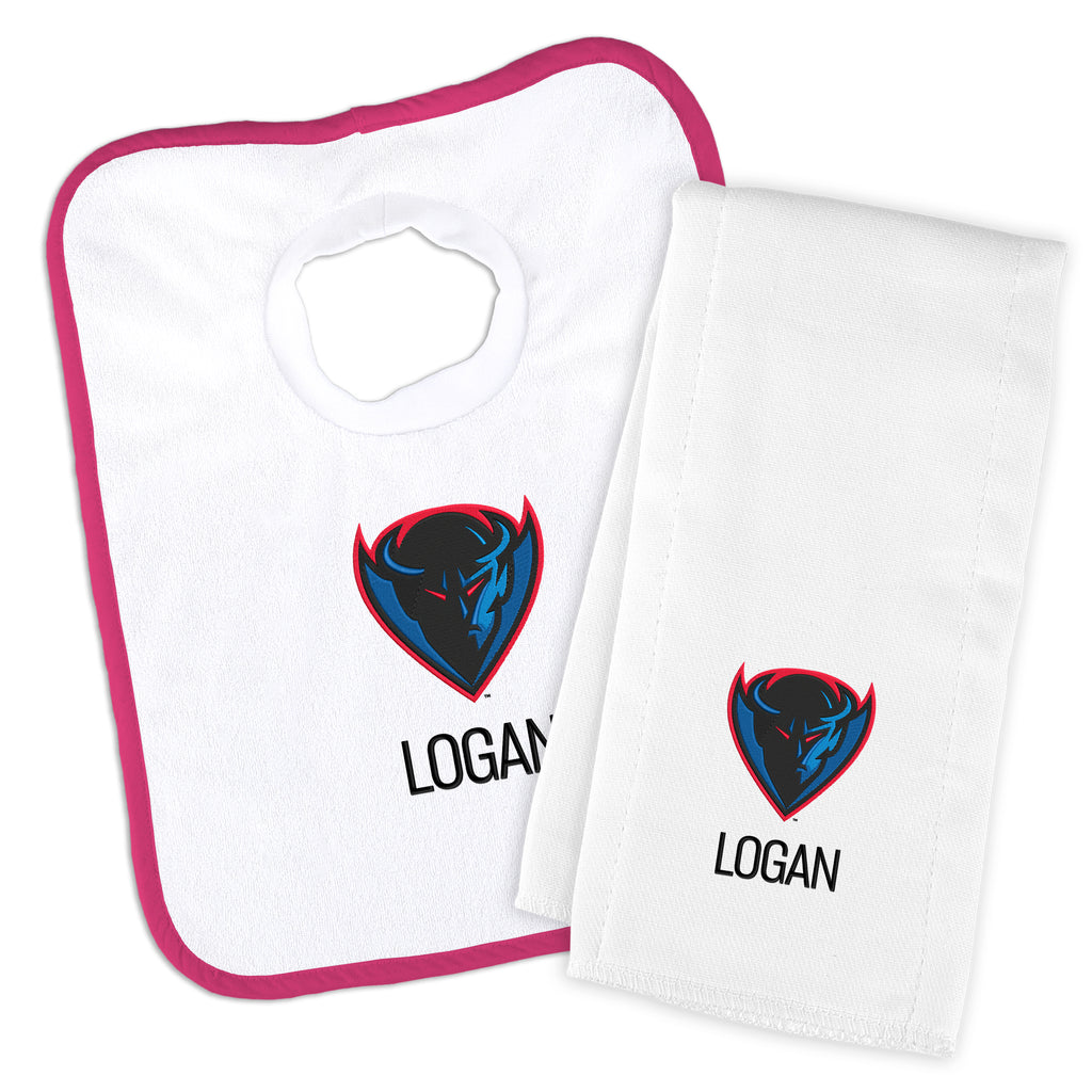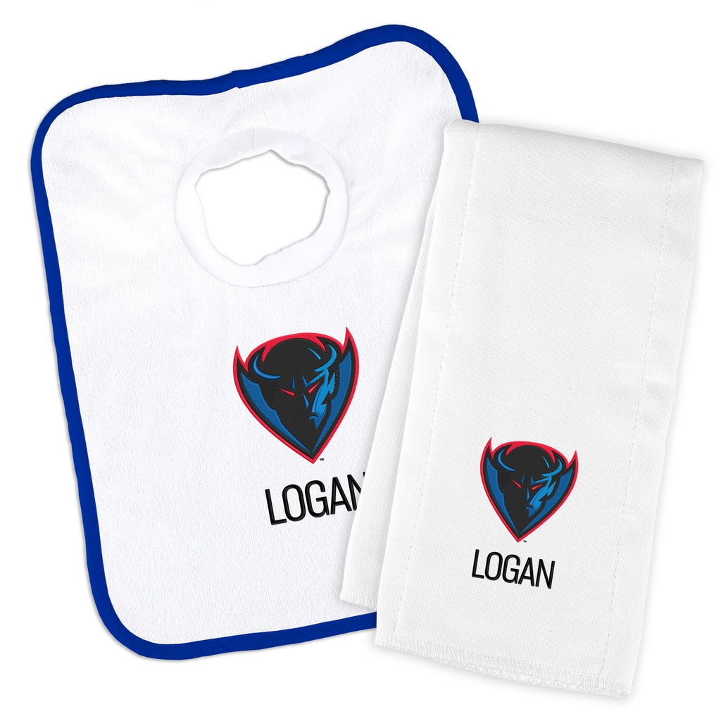 Personalized DePaul Blue Demons Bib and Burp Cloth Set