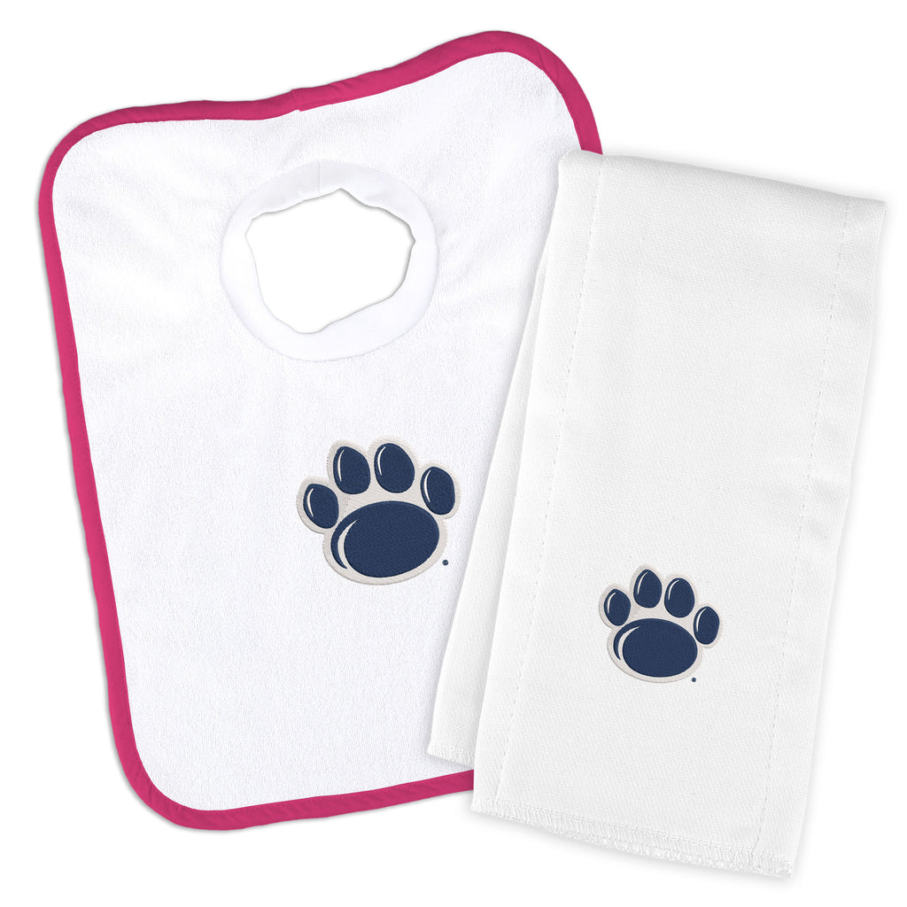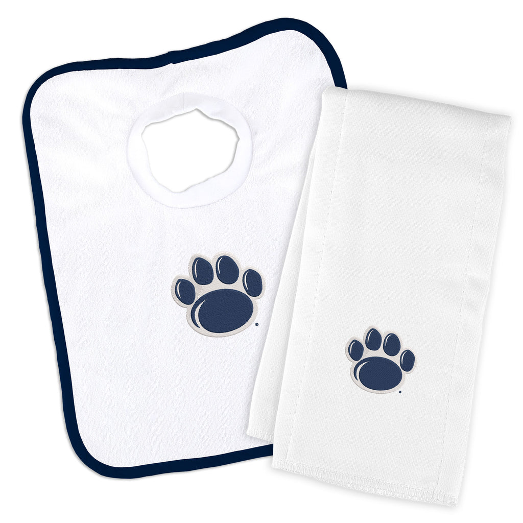 Embroidered Penn State Nittany Lions Paw Bib and Burp Cloth Set