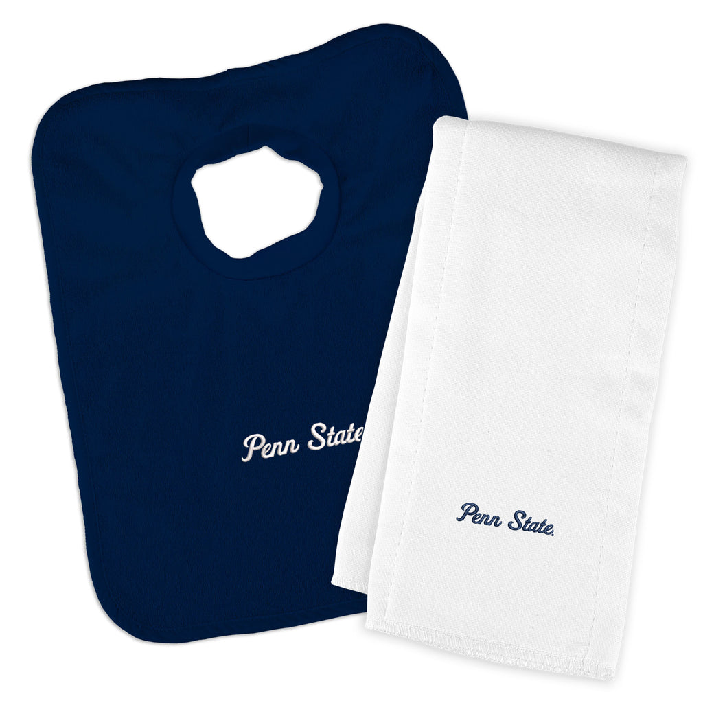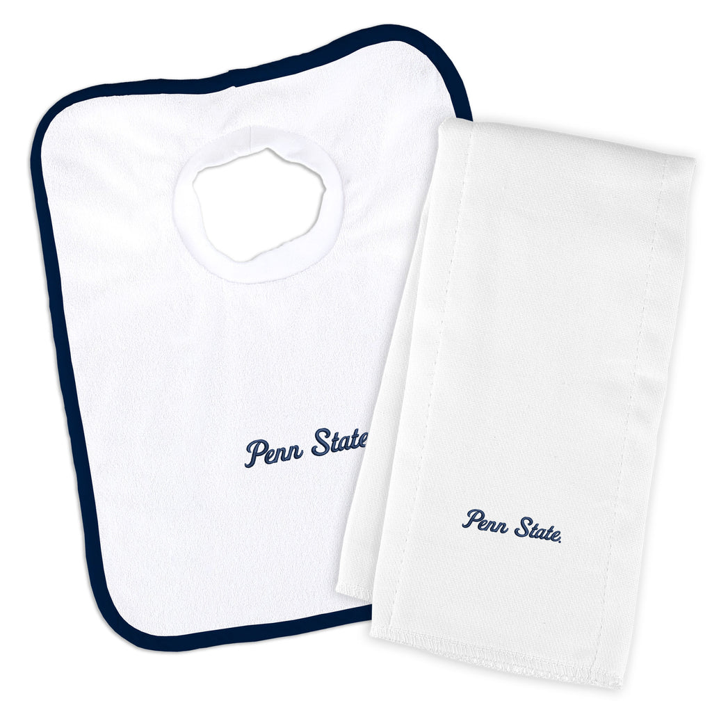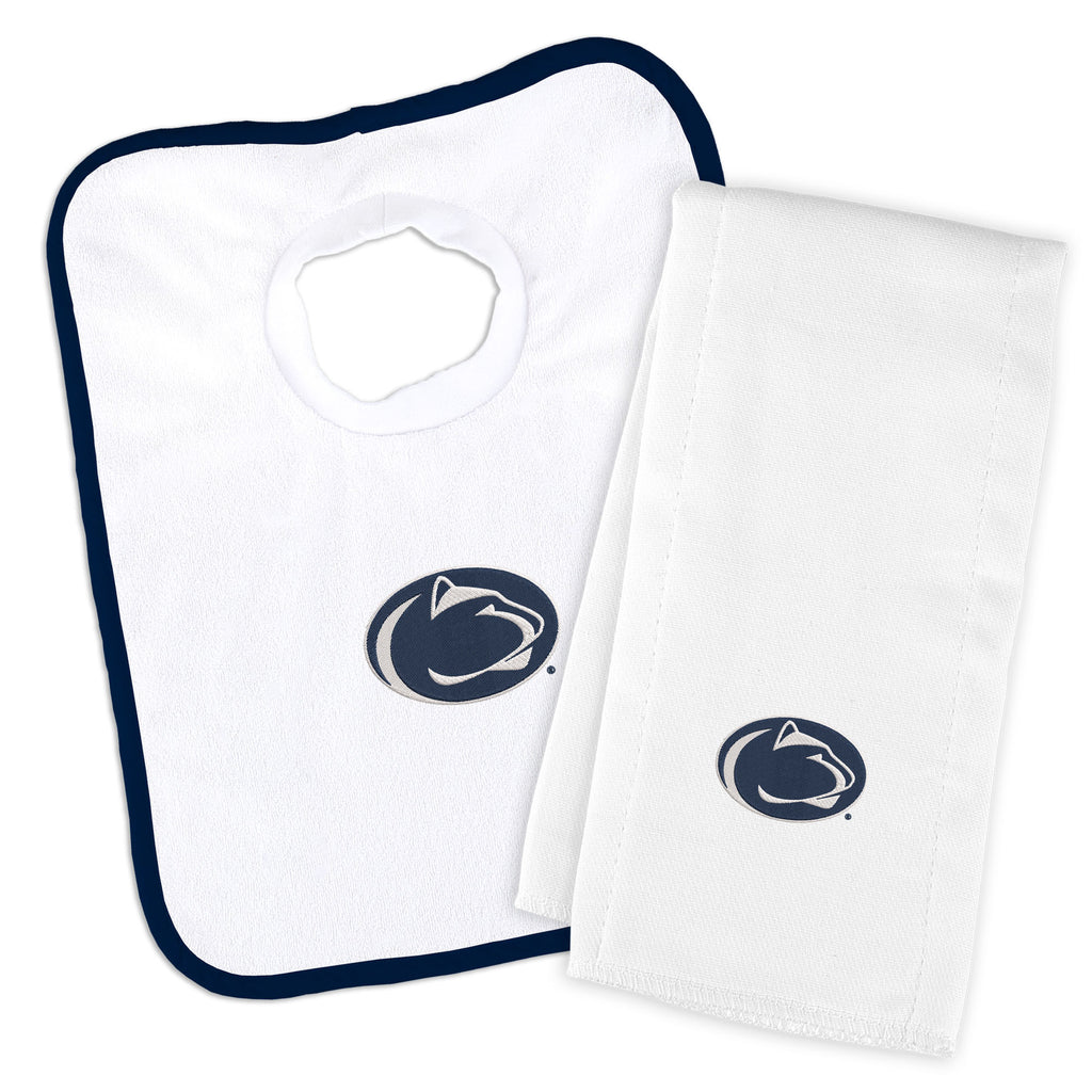 Embroidered Penn State Nittany Lions PSU Bib and Burp Cloth Set