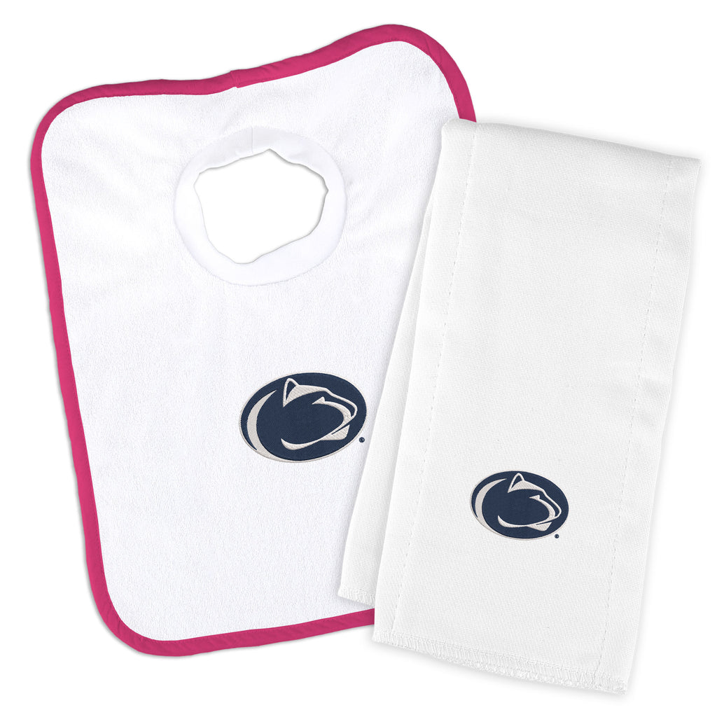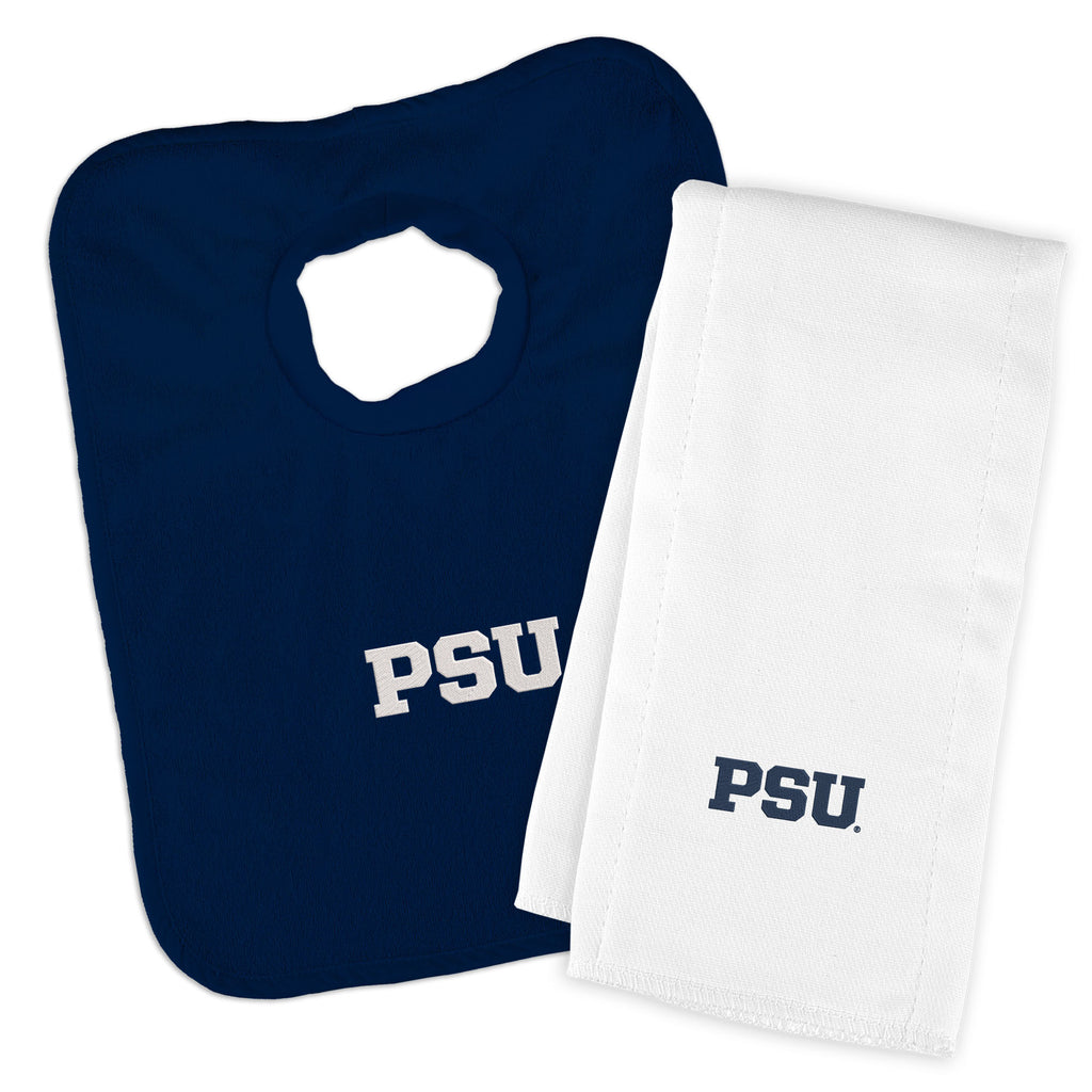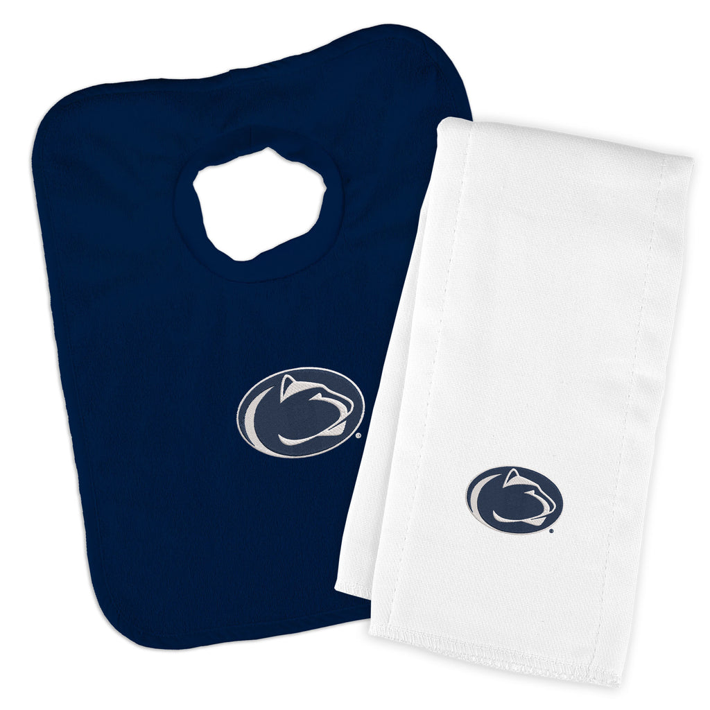 Embroidered Penn State Nittany Lions PSU Bib and Burp Cloth Set
