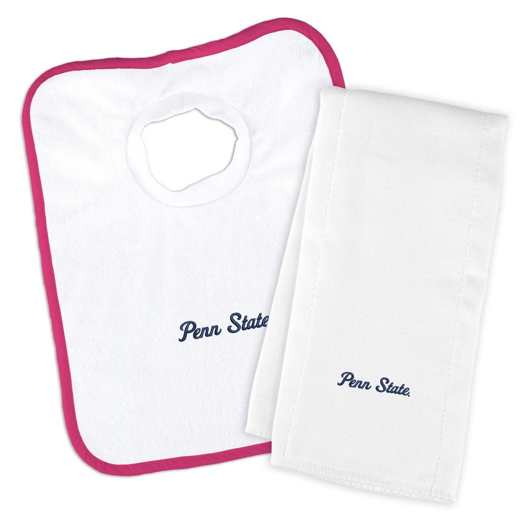 Embroidered Penn State Nittany Lions Script Bib and Burp Cloth Set