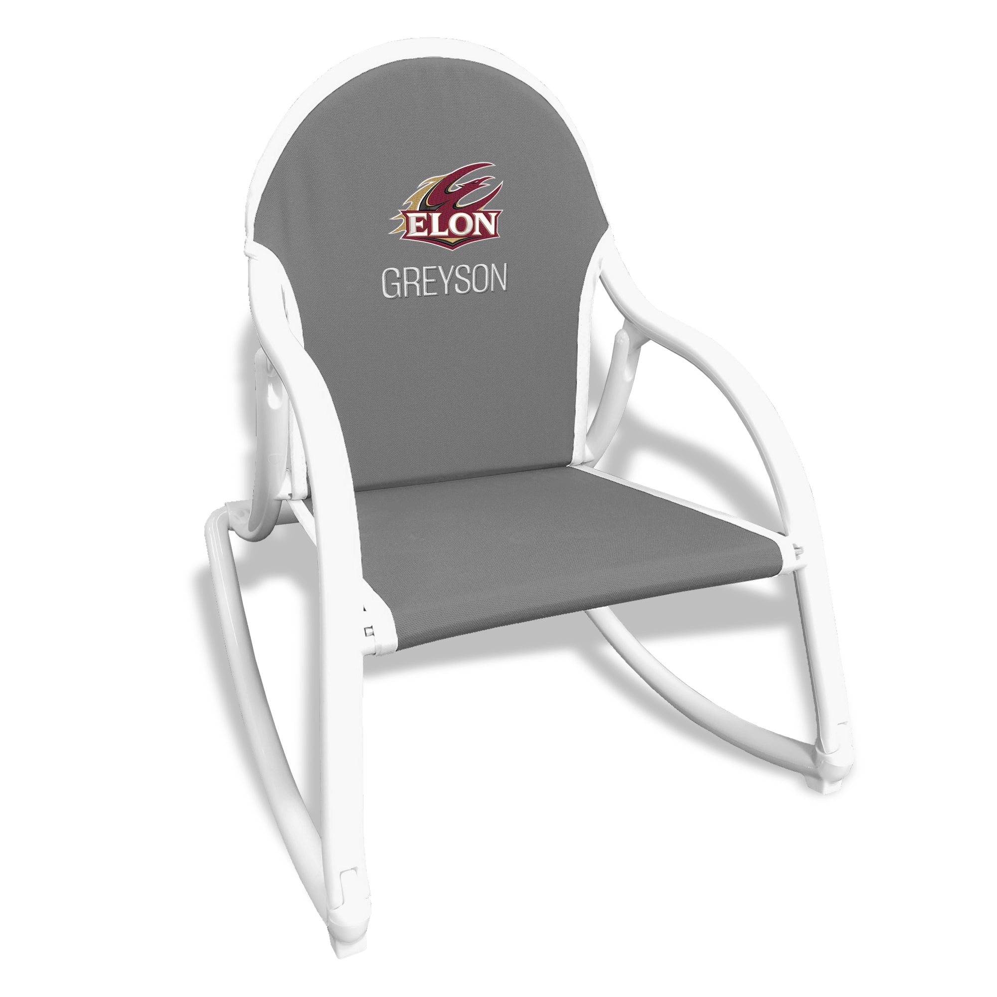 Our kid-sized Personalized Elon Phoenix Rocking Chair will be the best seat in the house (and everywhere else!). This Phoenix chair is not only super comfortable, but also foldable and lightweight, making it easy to transport from room to room or put away for storage. The adult weight fabric and sturdy construction ensure that your little Phoenix fan will be both comfortable and safe. The rockers are 3 inches wider than the seat, so the Phoenix chair is extra stable, and foot pads under the fronts of the rockers hold the chair steady so toddlers can safely climb in to sit. This Phoenix rocker is also 100% water-safe, so it can be used outside in the yard, at the park, at a game or even at the beach!