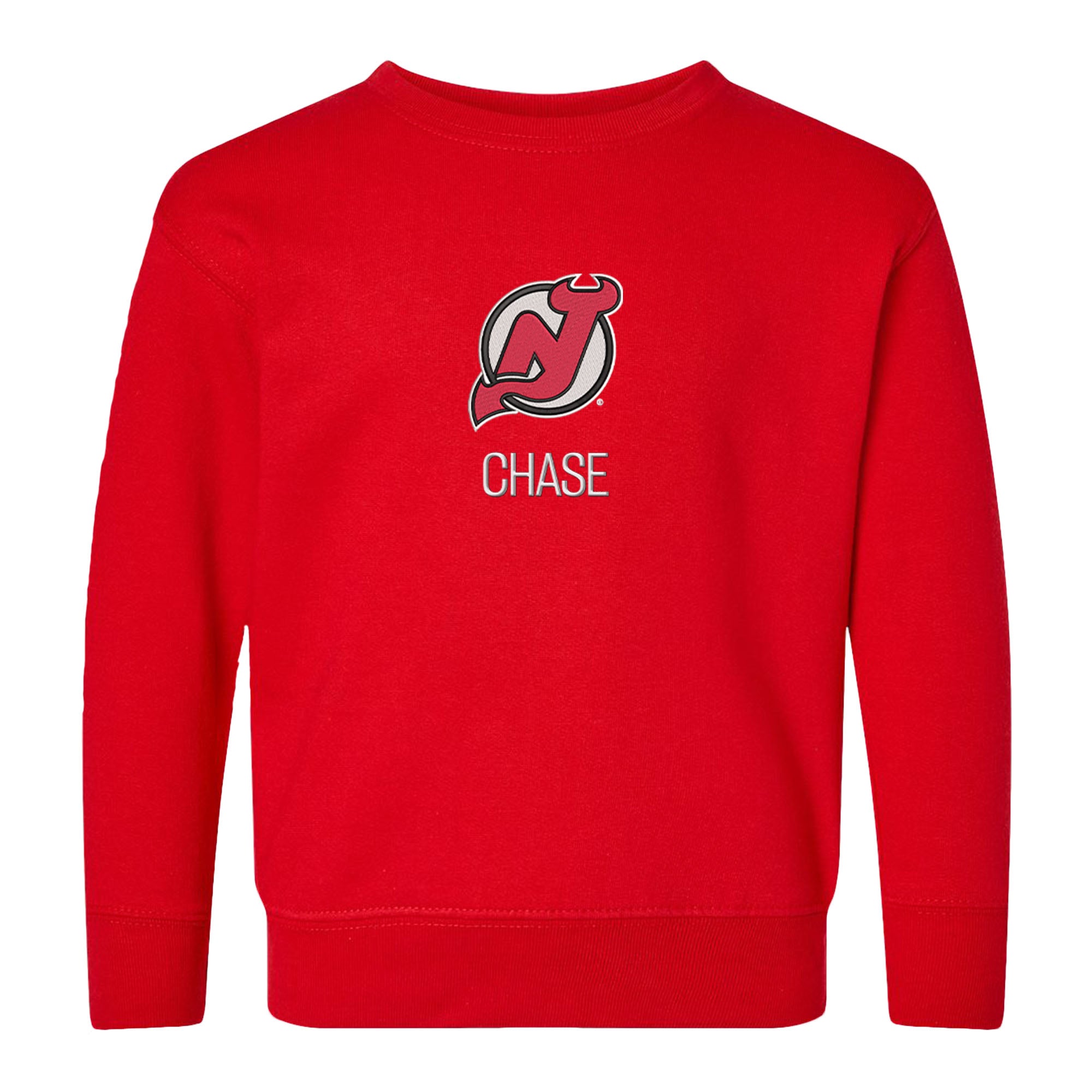 Make your child's day with this personalized New Jersey Devils toddler crewneck sweatshirt. Order now and show your support for one of the NHL's most iconic teams!