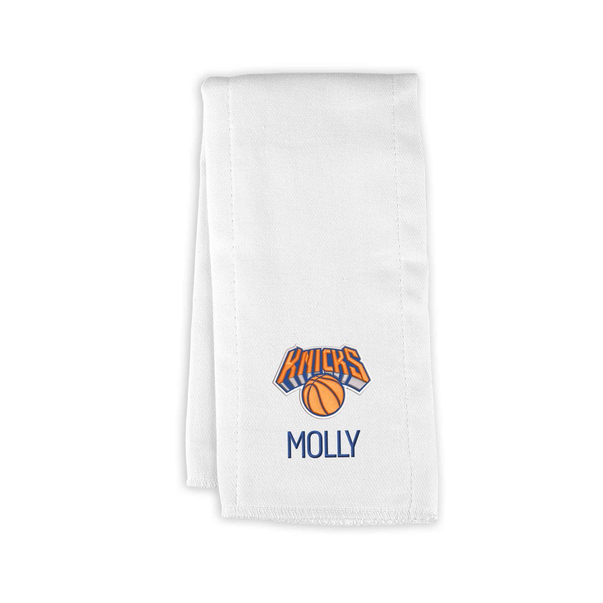 Our 100% gauze weave cotton burp cloths have been a fan-favorite since 1997! Be sure to clean up all spills and messes in style with this Personalized New York Knicks burp cloth. This burp cloth is not only super useful but is also a great keepsake!