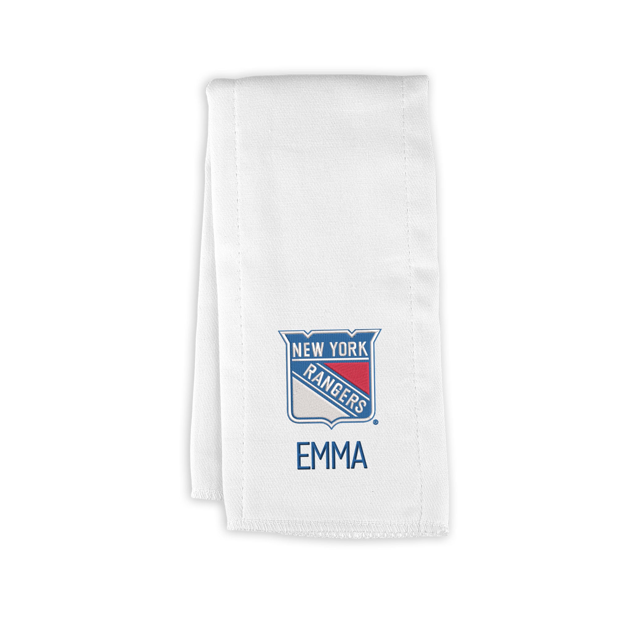 Personalized New York Rangers burp cloths are perfect for daily cleanups!