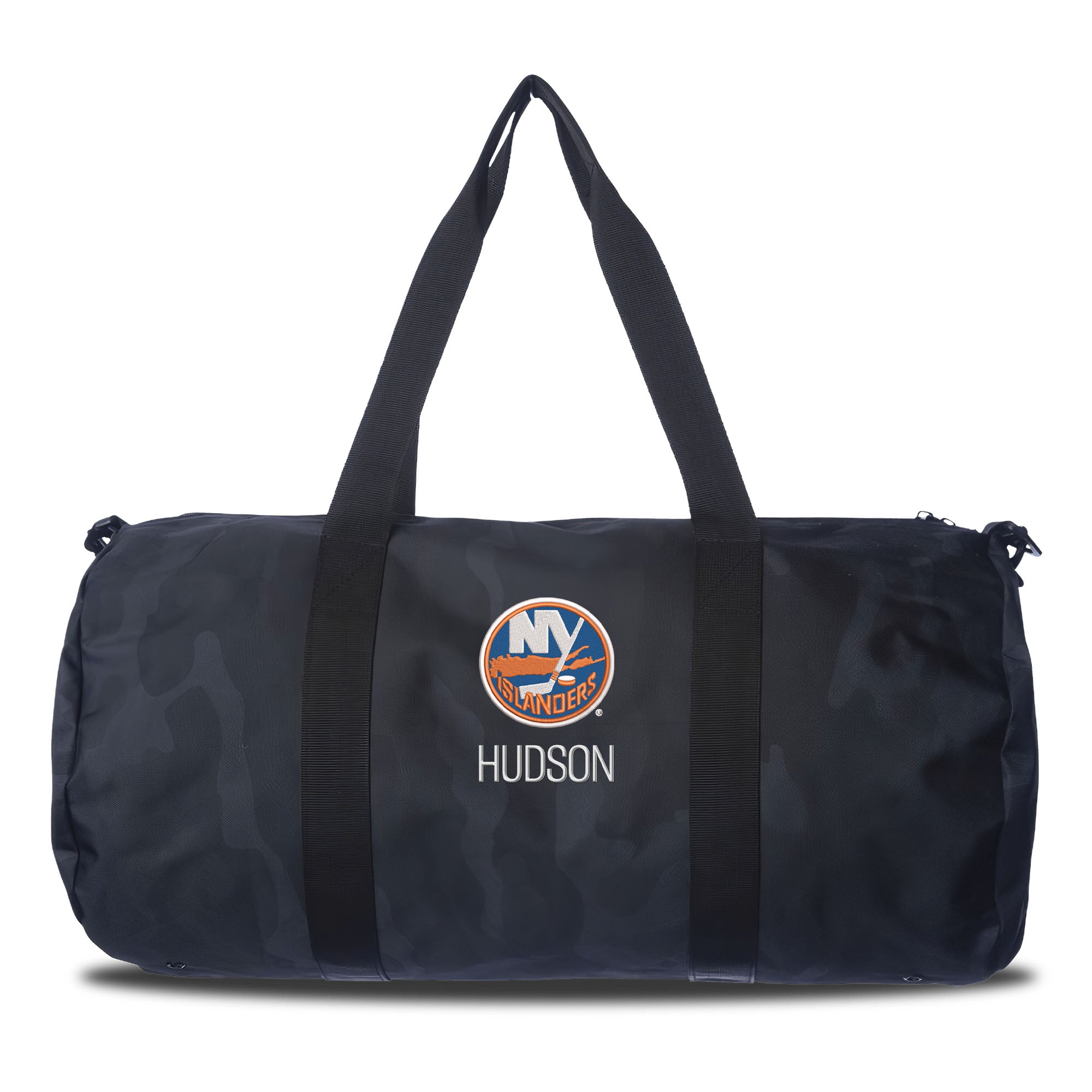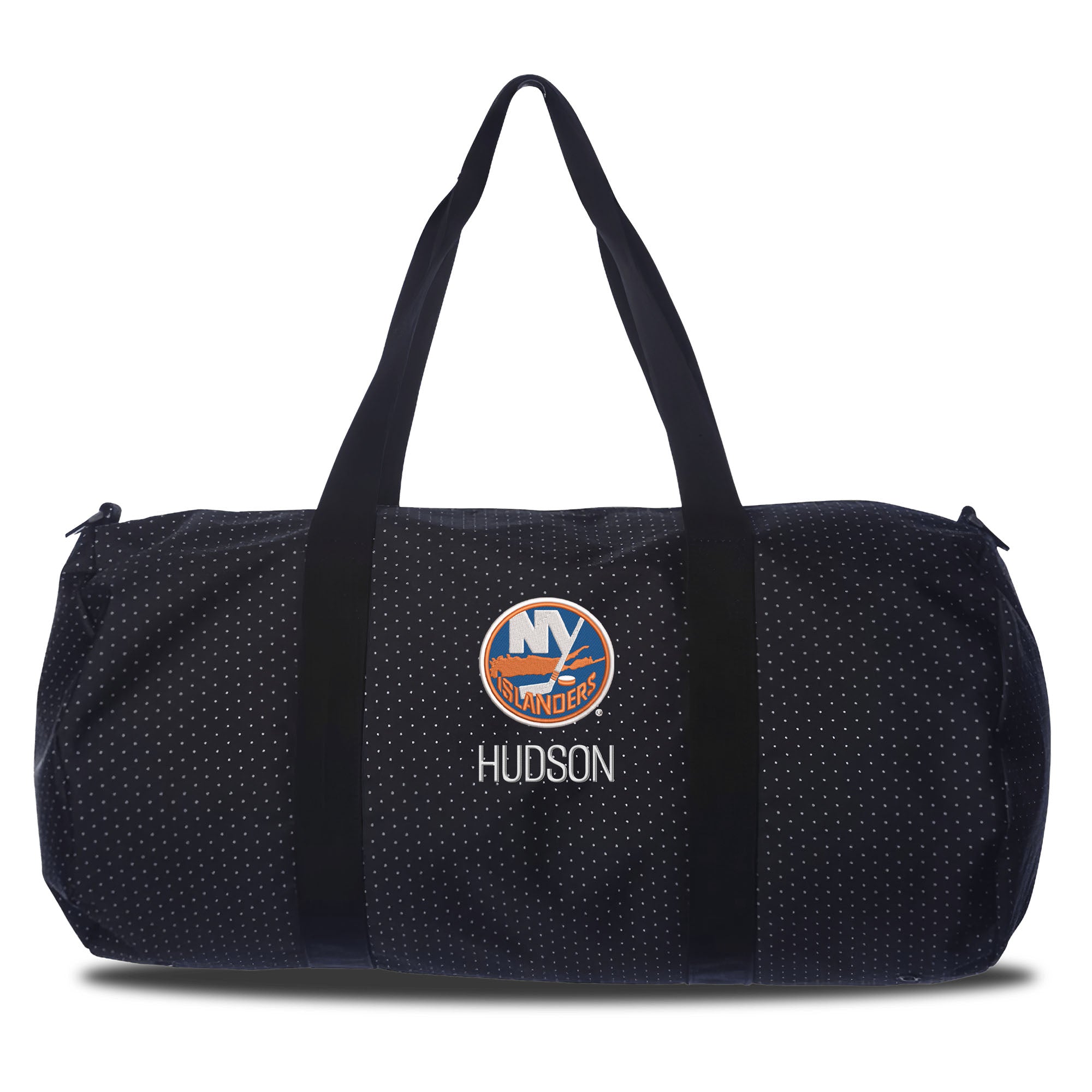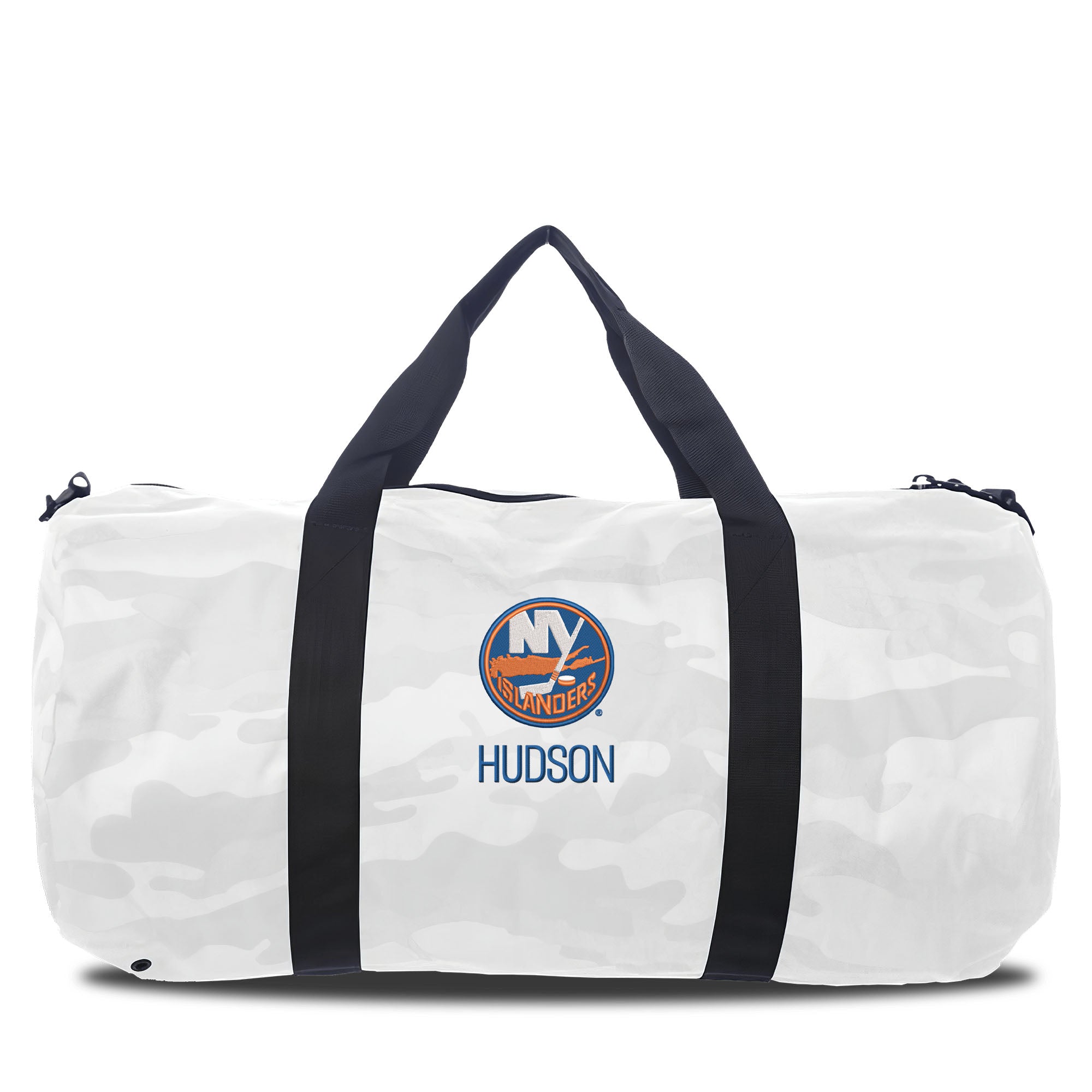 Gear up with pride using this high-quality, officially licensed New York Islanders duffel bag. At 20.5" wide by 10.5" tall, it offers ample space for all your essentials, whether for the gym, travel, or the next big game. Designed for durability, it includes a spacious interior pocket to keep smaller items secure. Featuring both sturdy carrying handles and a removable shoulder strap, this duffel bag ensures comfortable and versatile carrying options. Personalize it with your name or a favorite phrase for a unique touch. Show your support for the New York Islanders wherever you go with this stylish, premium duffel bag!