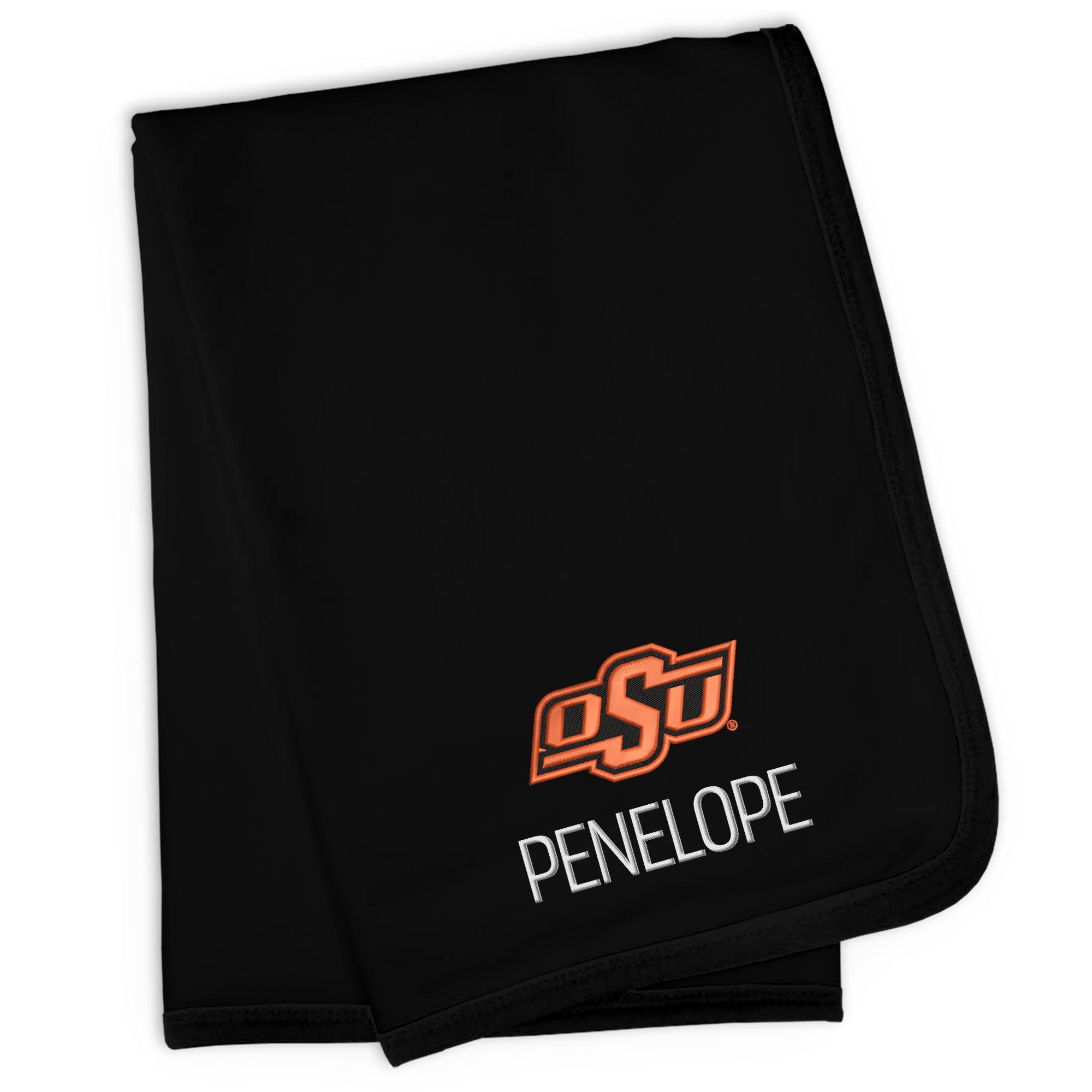 Our Personalized Oklahoma State Cowboys Blanket is sized just right for a baby fan. Constructed from super soft 100% cotton jersey knit and trimmed in Cowboys team colors, this blanket is perfect for walks in the stroller or swaddling at bedtime. Each blanket is embroidered with the official Cowboys logo and your little one’s name or nickname.