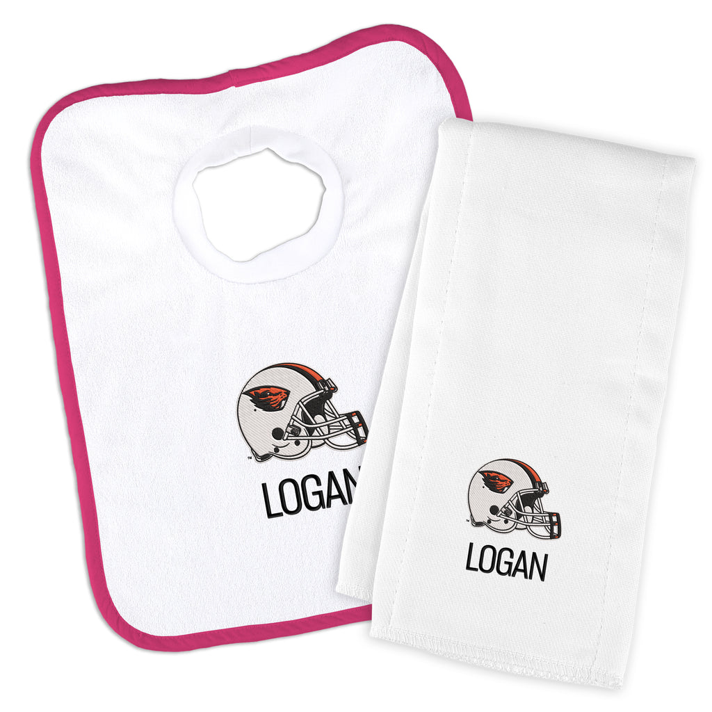 Personalized Oregon State Beavers "Helmet" Bib and Burp Cloth Set