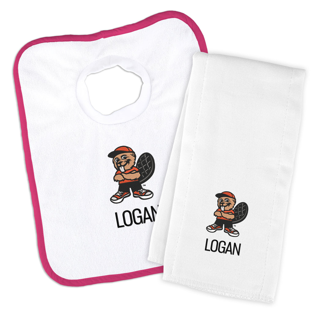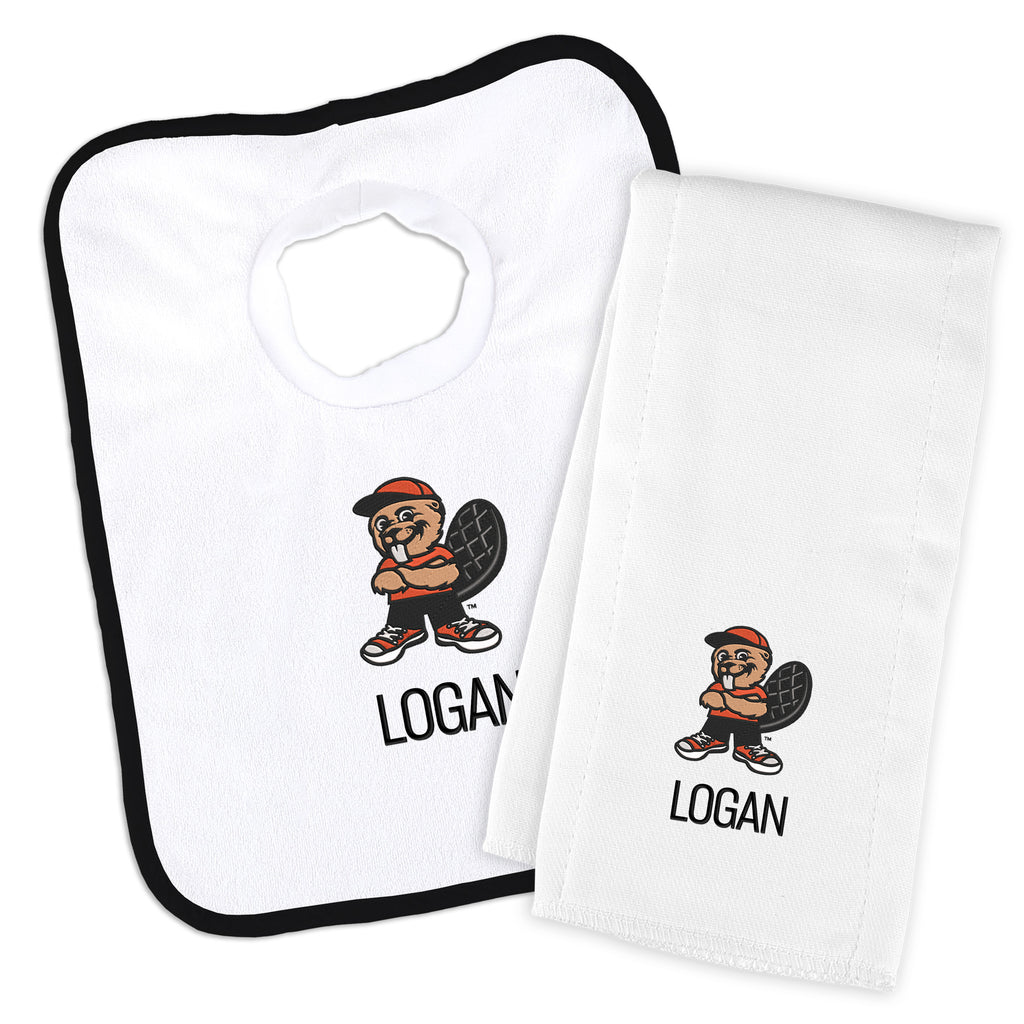 Personalized Oregon State Beavers "Jr. Benny" Bib and Burp Cloth Set