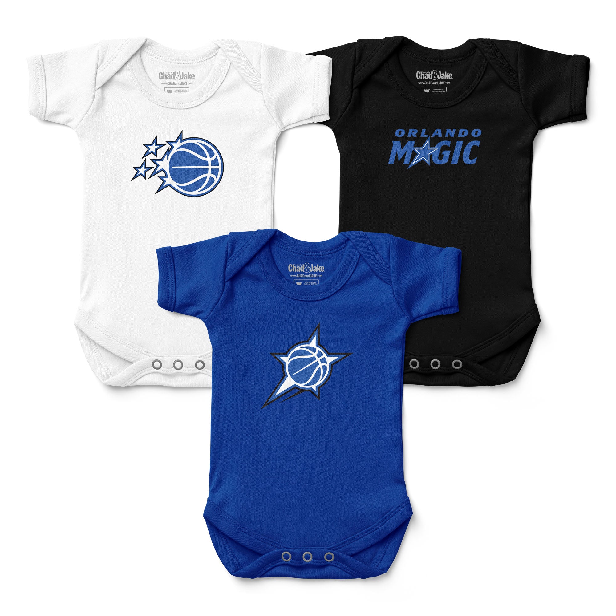 Introduce your little one to the world of hockey with our officially licensed Orlando Magic 3-Pack Bodysuits. Crafted from soft and breathable cotton, these bodysuits are perfect for keeping your baby comfortable throughout the day. Each pack includes three unique designs that proudly represent the Orlando Magic, ensuring your baby looks adorable while supporting the team. Available in five sizes: 0-3 Months, 3-6 Months, 6-12 Months, 12-18 Months, and 18-24 Months. Whether it's game day or everyday wear, your little one will be the cutest Magic fan in town. Get your 3-pack today and show your Orlando Magic spirit!