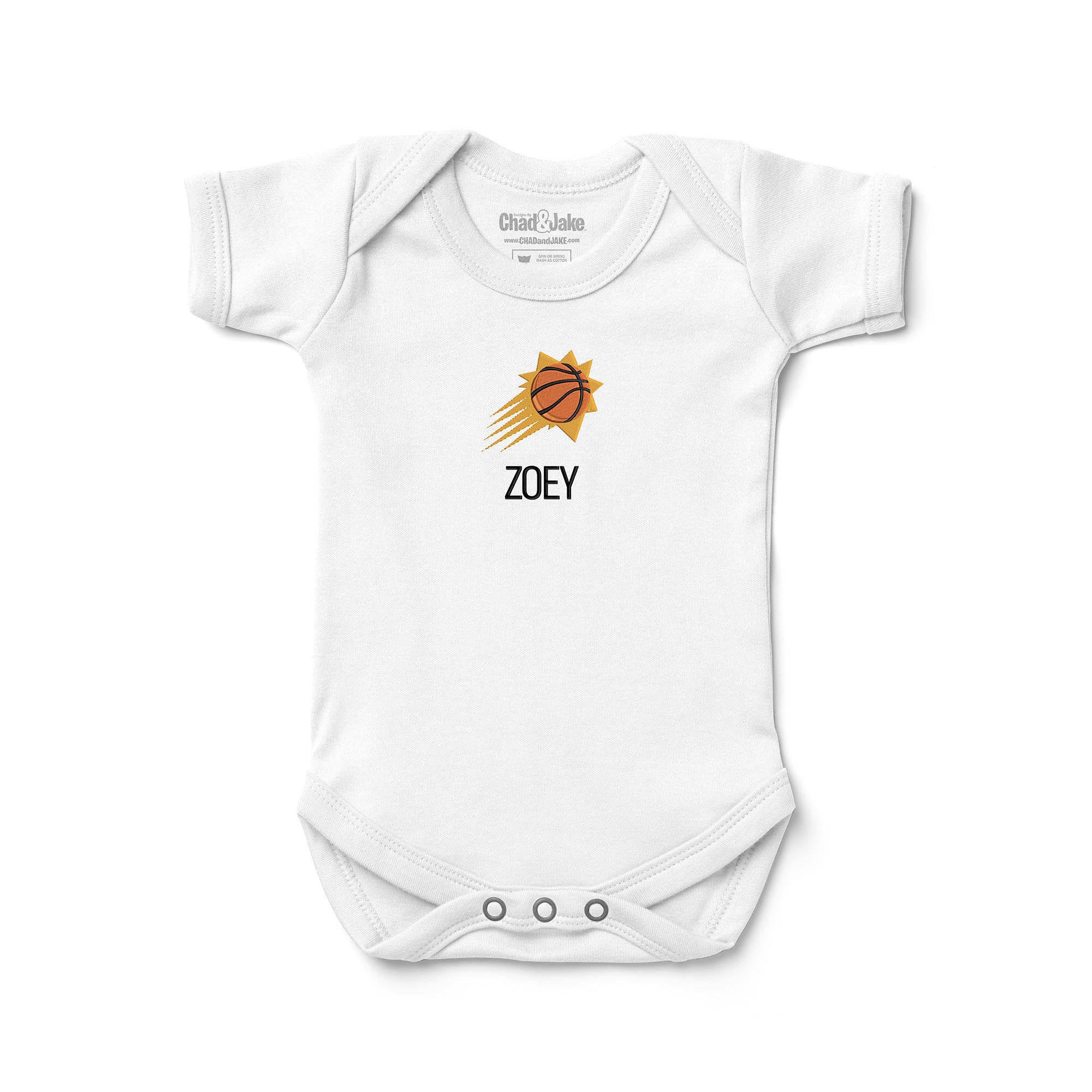 But the real standout feature of this bodysuit is the option to personalize it with your little one's name, initials, or nickname under the logo. Let everyone know where your loyalty lies with this personalized bodysuit. Whether you're cheering on the Suns at Talking Stick Resort Arena or just playing around at home, this bodysuit is the perfect way to show your team pride.